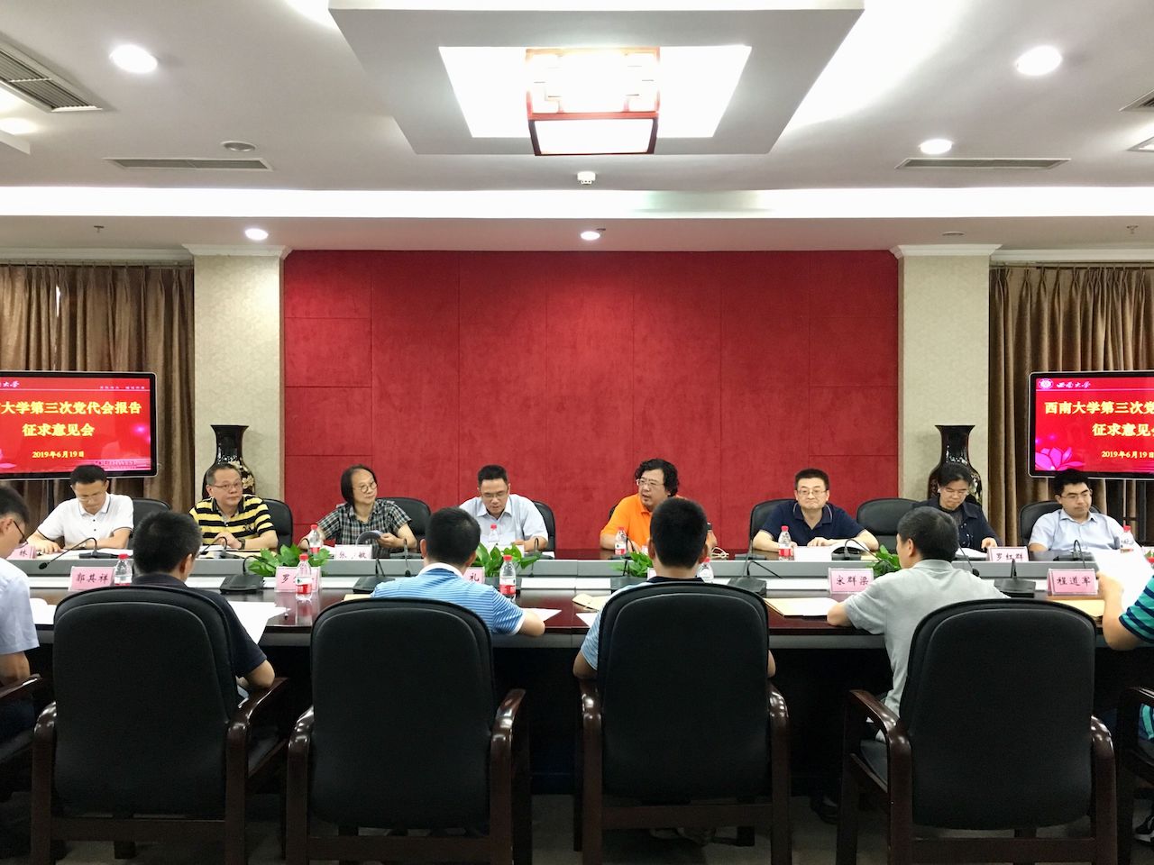 6月19日下午,学校在行署楼五会议室召开第三次党代会报告征求意见会,听取教师代表对党代会报告(征求意见稿)的意见、建议。陈时见副校长、崔延强副校长出席会议。