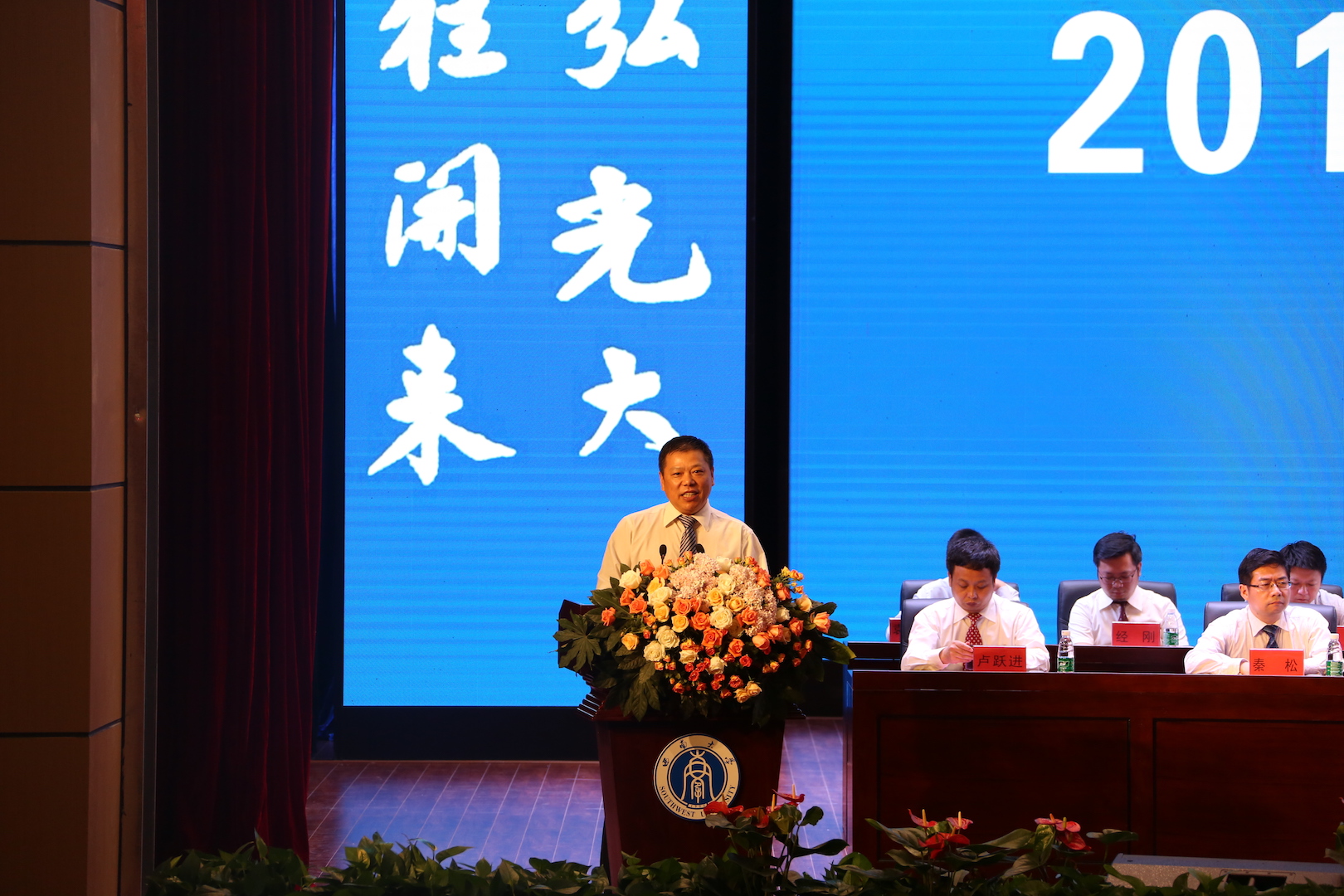 张卫国校长向2019届全体本科毕业生表示祝贺,向在同学们成长、成才过程中付出辛勤汗水的教职员工们,向前来见证孩子们毕业时刻的家长朋友们表示崇高敬意。张校长寄语全体毕业学生,希望大家找准人生方向,与国家民族同心共向,主动将小我融入到祖国人民的大我当中,与时代同发展,与祖国同命运,以青春梦想赴青春志向,齐头并进,各尽所能,希望大家选择自己所爱的,爱上自己所选的。张校长以89岁高龄的的校友袁隆平院士为例指出,一个人只有在感兴趣且有能力的情况下,才能发挥出最大的潜质;希望大家在实践中锤炼强大心理力量,能在任何境遇中不忘初心,练就“千磨万击还坚韧,任尔东西南北风”的潇洒,感受“山重水复疑无路,柳暗花明又一村”的惊喜,培养“千金散尽还复来”的豁达。