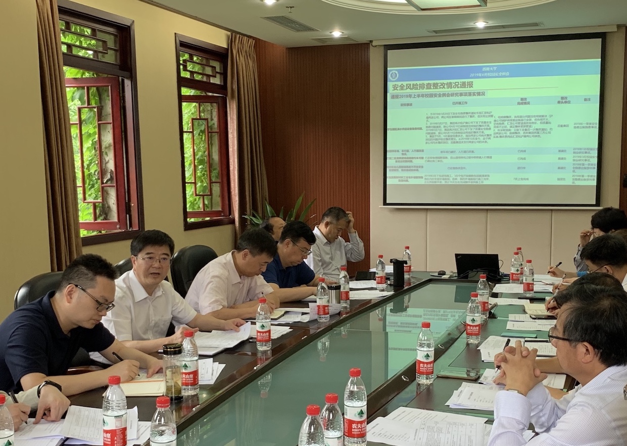 会议通报了2019年上半年校园安全例会研究事项落实情况和6月各单位上报安全风险情况,听取了实验室与设备管理处和后勤集团关于实验室安全检查发现问题及工作建议等专题汇报。与会人员对各项议题进行了充分讨论,并就各自牵头整改事项进行了补充说明,明确了安全隐患事项整改重点和步骤。