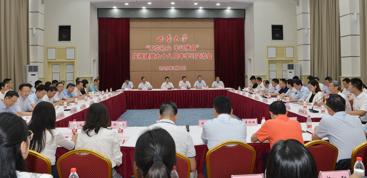 为隆重庆祝中国共产党成立九十八周年,学校党委于7月1日下午召开“不忘初心,牢记使命”庆祝建党98周年学习交流会。党委书记李旭锋,校长、党委副书记张卫国,党委副书记安春元,党委副书记、纪委书记李华,党委副书记潘洵,党委常委、副校长陈时见以及党群职能部门负责人,二级党组织党政领导代表,专职组织员代表,党支部书记代表,教师党员、学生党员、离退休党员代表,辅导员代表等60余人参加了学习交流会。会议由张卫国校长主持。