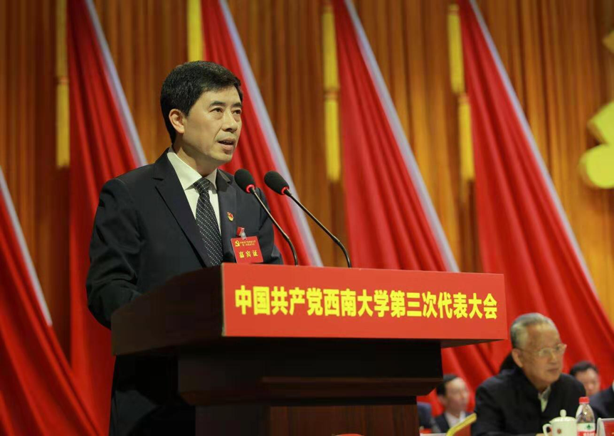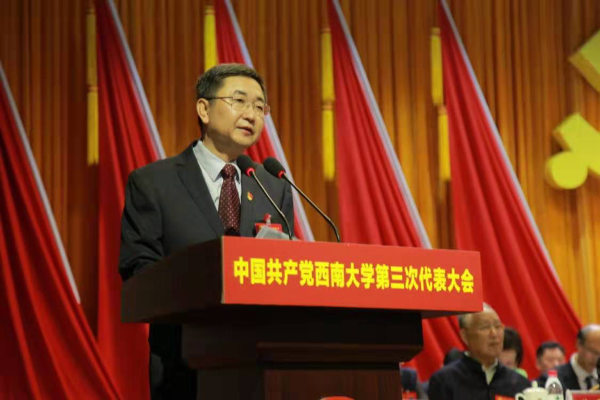 出席大会的上级领导和嘉宾有:教育部人事司副司长彭实,中共重庆市委教育工委书记、重庆市教委主任舒立春,中共重庆市北碚区委书记周旭,中共重庆市委组织部组织二处处长鲁学佳。在主席台就座的还有大会主席团全体成员和学校正职老领导、非中共党员校领导、院士、资深教授、全国人大代表等。出席大会的还有教育部人事司、市委组织部、市委教育工委和北碚区委有关部门负责同志。