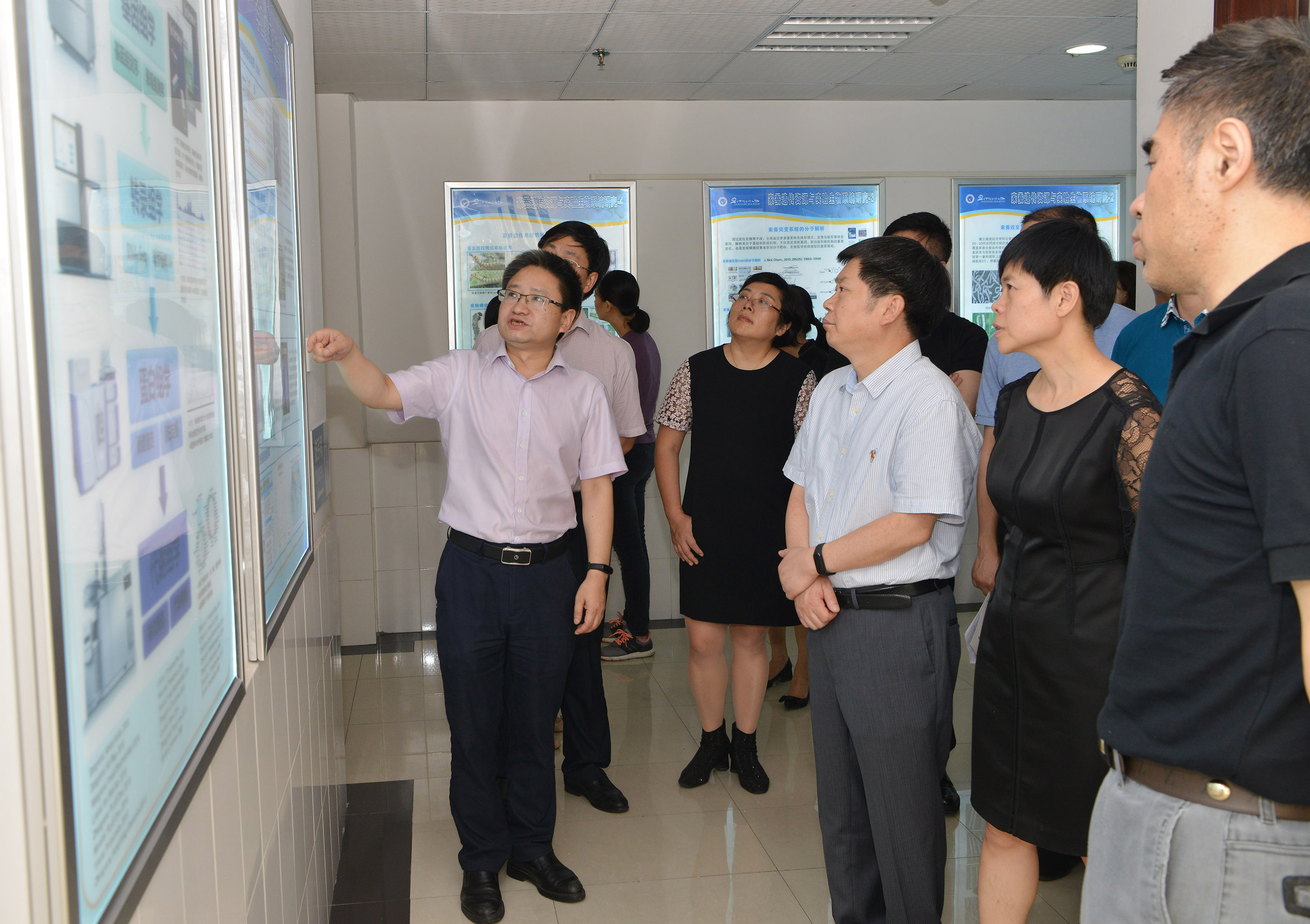 7月10日上午,重庆市人大常委会副秘书长刘春焱一行前来学校调研人才工作,考察了家蚕基因组生物学国家重点实验室、心理学部认知与人格教育部重点实验室。重庆市人大社会委主任委员陈彬,重庆市人力资源和社会保障局副局长何振国,北碚区人大常委会主任彭烨、副主任董江民,学校副校长陈时见,以及学校相关职能部门负责人一同参与调研。