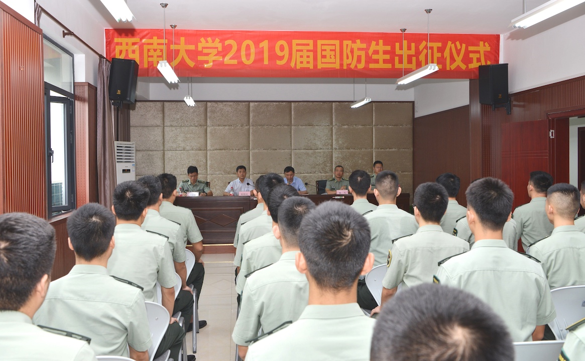7月15日上午,学校于第二学生活动中心举行2019届国防生出征仪式,校党委副书记潘洵出席仪式,国防生选拔培养办公室全体工作人员、全体2019届国防生参加了仪式。