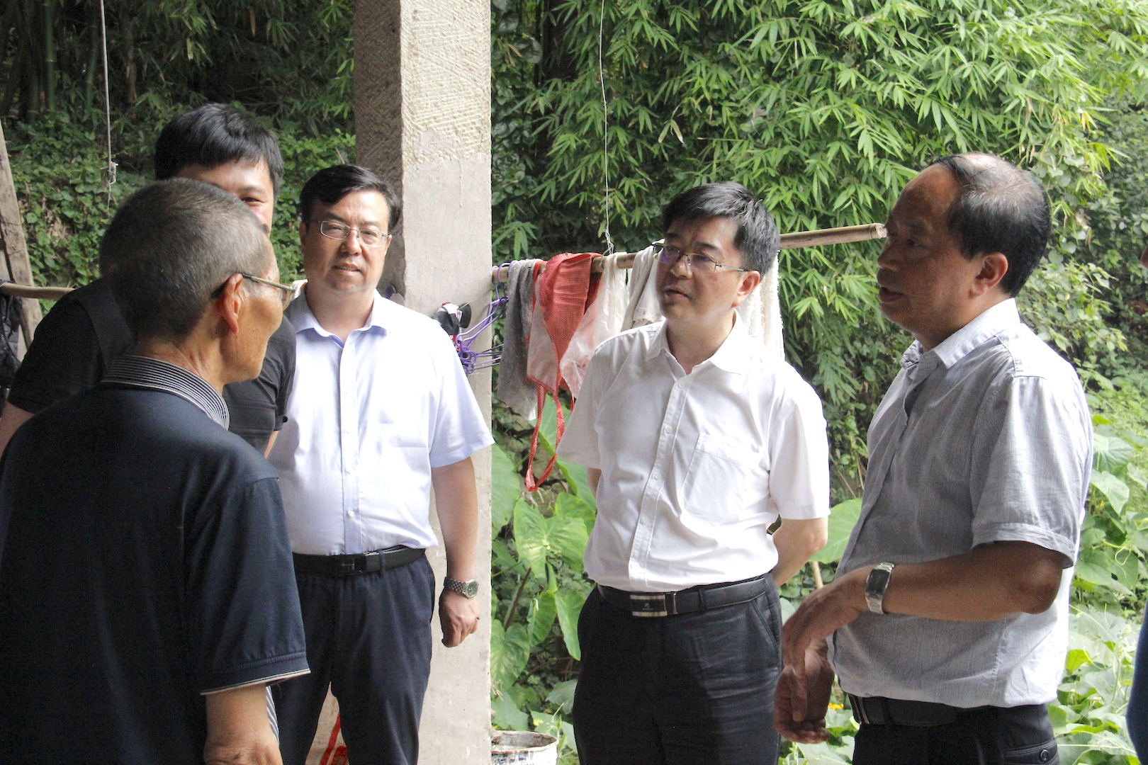 随后,李旭锋书记一行前往重庆市18个深度贫困乡镇之一的丰都县三建乡考察。三建乡是市人大办公厅帮扶集团对口帮扶的乡镇,学校作为市人大帮扶集团成员单位,对口帮扶重点是三建乡蔡森坝村。李旭锋书记一行深入蔡森坝村贫困户杨应昌和刘明秀家中拉起家常,详细了解他们的家庭生活状况、农业产业发展和收入主要来源情况,宣讲脱贫攻坚相关政策。李旭锋书记一行考察调研了由学校专家规划设计,正在建设中的丰都三建生态流水养殖基地,了解全村产业发展和脱贫攻坚工作。李旭锋书记看望了由学校选派的驻村“第一书记”范德臣,勉励他进一步发挥学校与地方的桥梁和纽带作用,为脱贫攻坚作出更大的贡献。