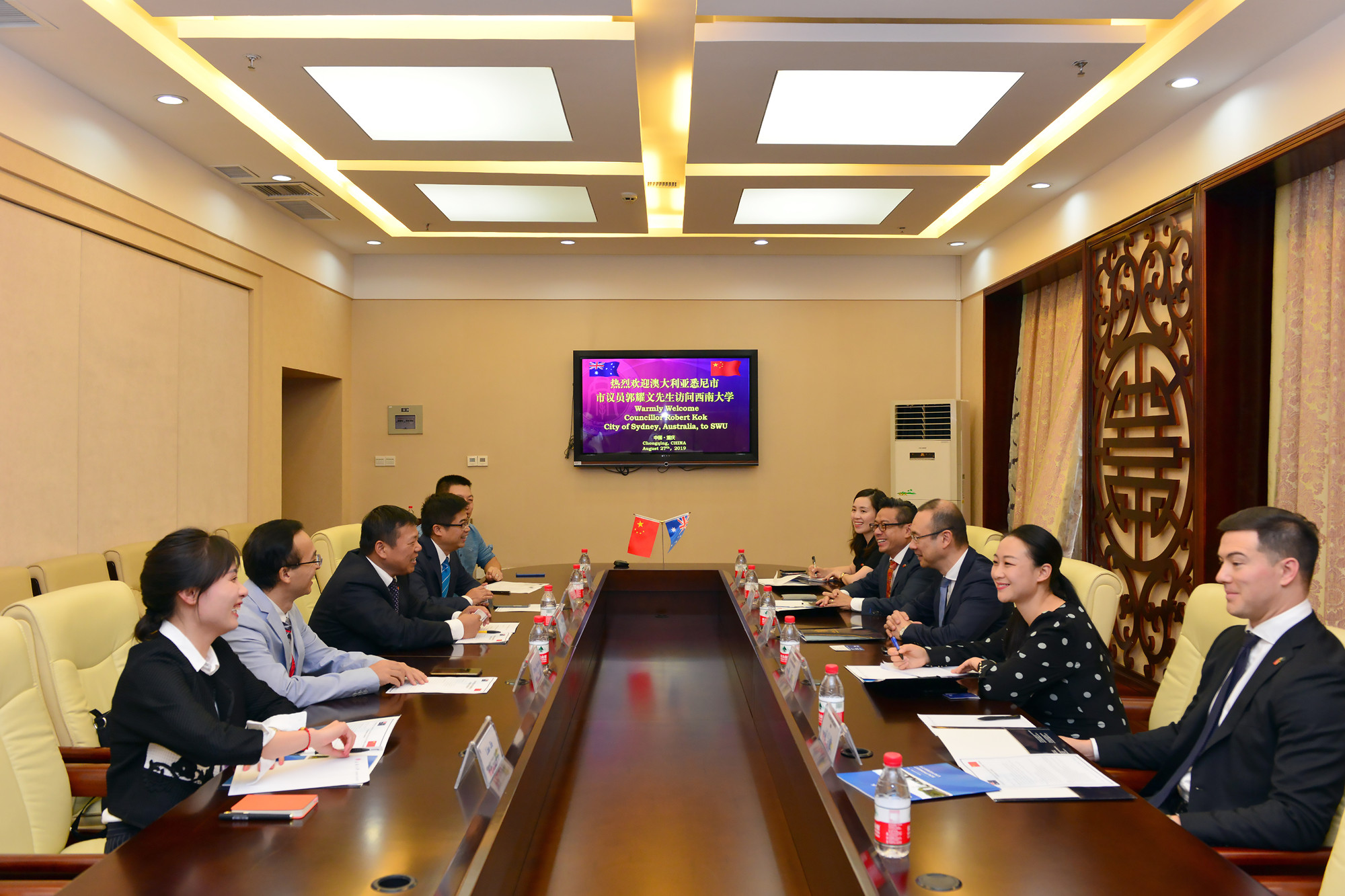 8月27日,澳大利亚悉尼市市议员郭耀文先生,在澳大利亚驻成都总领事林明皓先生陪同下来校访问。校长张卫国会见来访客人。