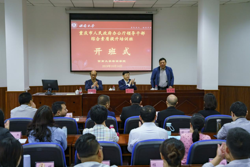 10月14日,由重庆市人民政府办公厅主办、学校承办的重庆市人民政府办公厅领导干部综合素质提升培训班在学校开班。重庆市人民政府办公厅党组成员、副主任凌凡,taptap点点官方网站校长张卫国出席开班式并讲话。开班式由培训学院院长罗朝明主持。