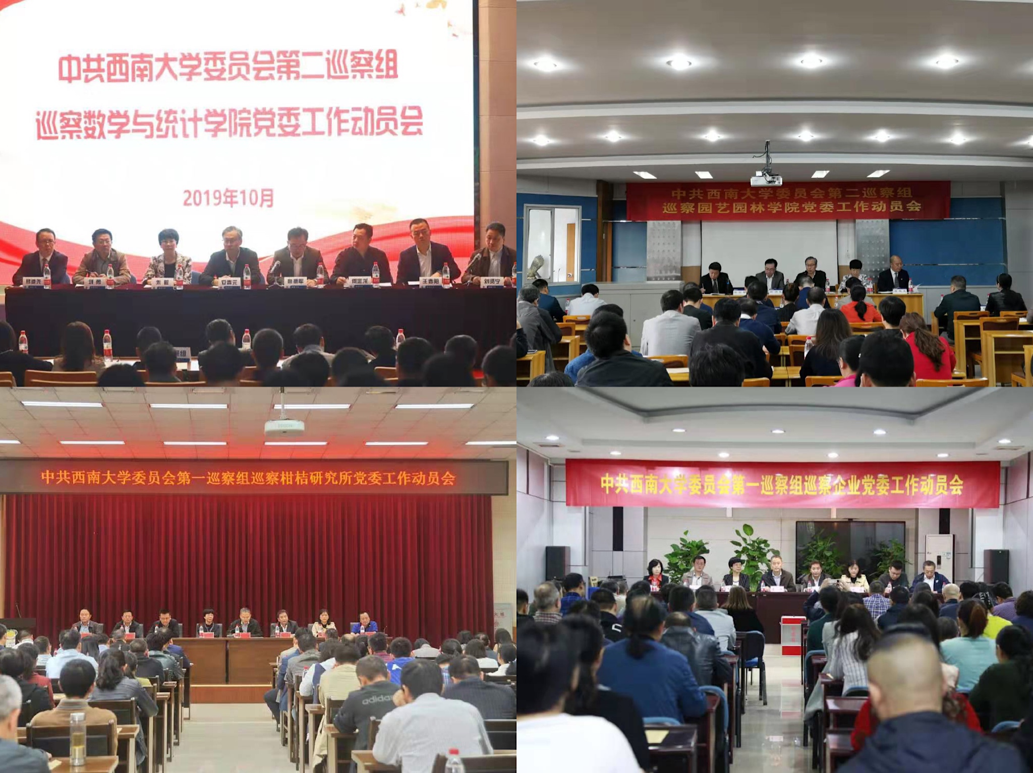 按照学校党委关于巡察工作统一部署和工作要求,10月10日至12日,学校党委各巡察组分别进驻数学与统计学院党委、园艺园林学院党委、柑桔研究所党委、企业党委等4个被巡察单位,并先后组织召开巡察工作动员会。党委副书记、巡察工作领导小组副组长安春元,党委副书记、纪委书记、巡察工作领导小组副组长李华出席有关单位动员会并讲话。