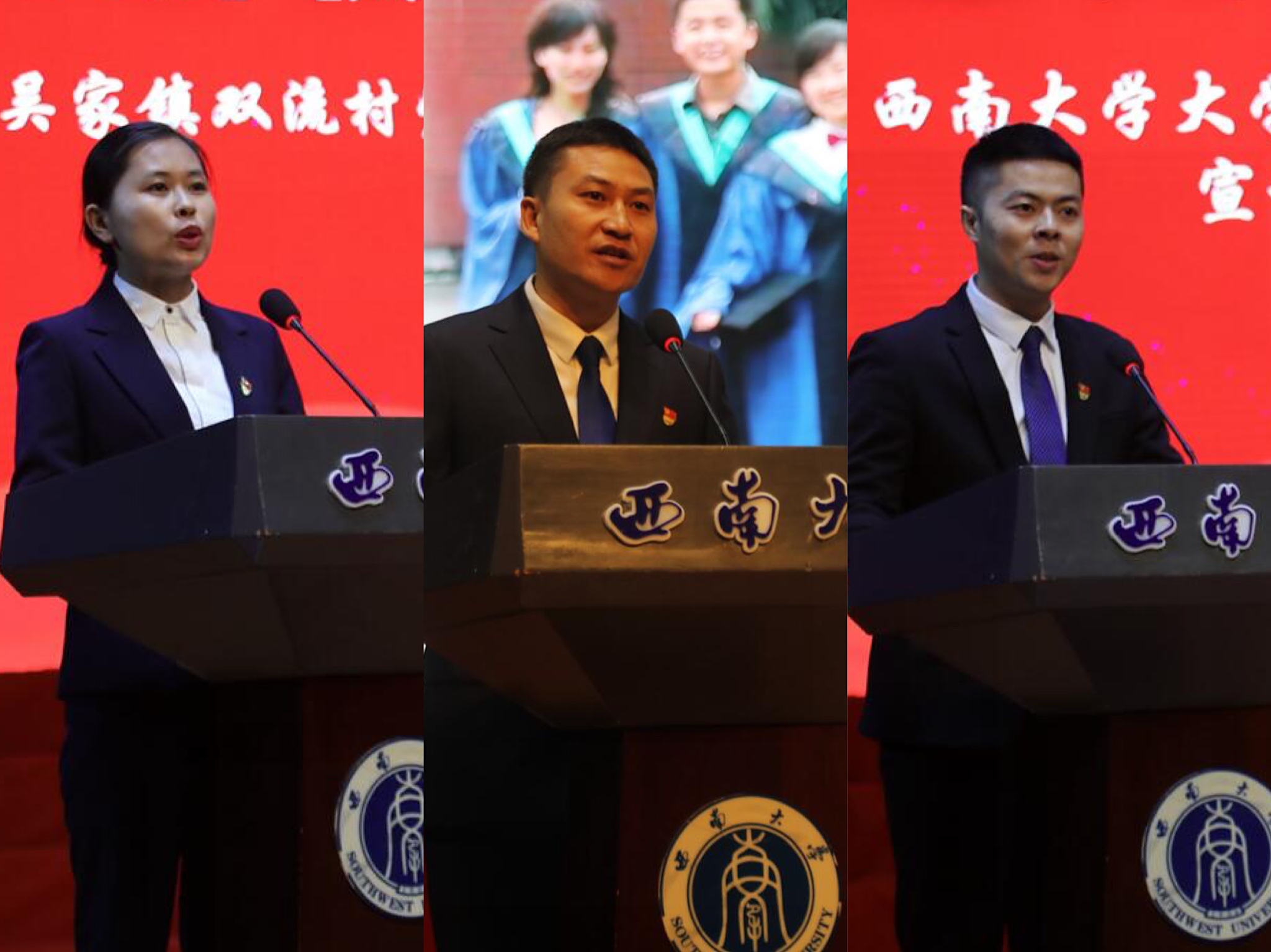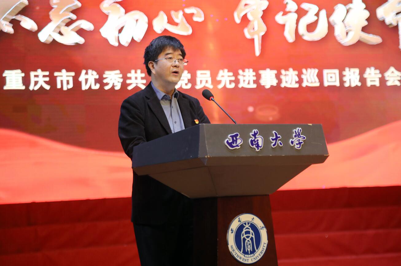 10月16日上午,第二批“不忘初心、牢记使命”重庆市优秀共产党员先进事迹巡回报告会在学校光大礼堂举行。党委书记李旭锋,校长、党委副书记张卫国,党委副书记安春元,党委副书记、纪委书记李华,副校长陈时见、靳玉乐、崔延强、王进军,校长助理周光明,党委常委、组织部部长杨爱华等出席报告会,全体副处级以上领导干部、全体辅导员以及各学院(部)师生代表聆听报告。