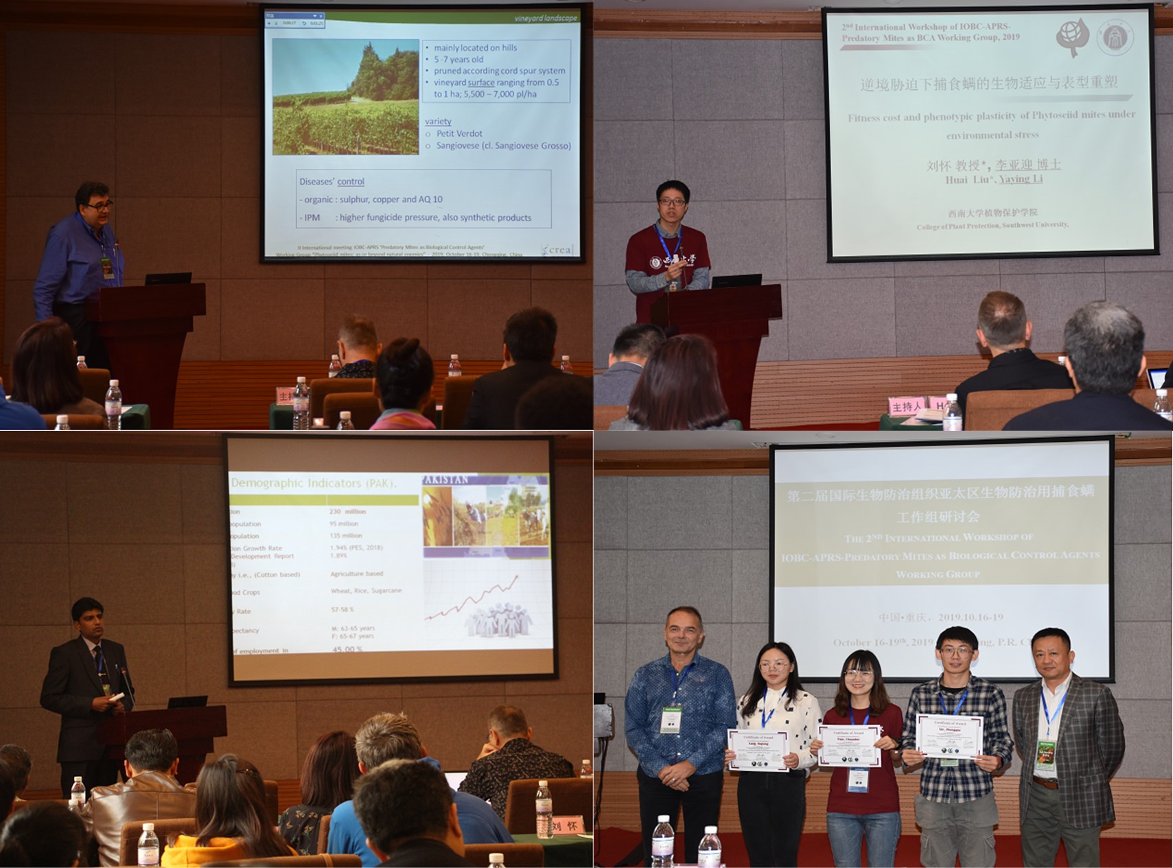 10月16 -19日,“第二届国际生物防治组织亚太区生物防治用捕食螨工作组会议”在重庆市寄北酒店召开。本次会议由taptap点点官方网站、中国农业科学院植物保护研究所、国际生物防治组织亚太区专业委员会主办,植物保护学院、农业科学研究院、重庆市植物保护学会共同承办,我校植物保护学院院长刘怀为此次亚太区捕食螨工作组会议的召集人和会议主席。