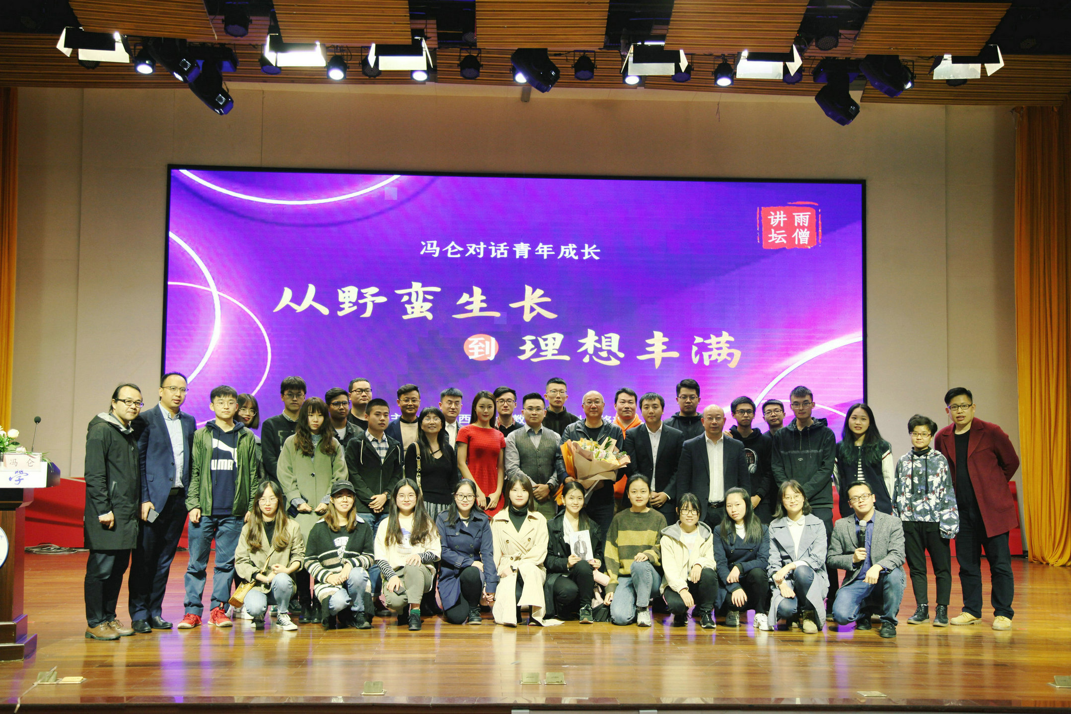在现场交流环节,冯仑先生围绕观众提出的如何以礼待人,如何自由选择,面对失败怎样调整心态等问题,一一作答,勉励青年学子要信念纯正、意志坚定、眼光长远,踏踏实实为成功不懈奋斗。