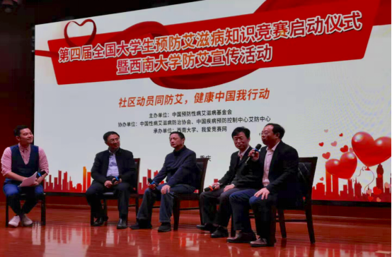 教育部体育卫生与艺术教育司原副司长廖文科巡视员、中国预防性病艾滋病基金会理事长孙新华、中国预防性病艾滋病基金会代理秘书长刘小平、中国疾病预防控制中心艾滋病首席专家邵一鸣教授、taptap点点官方网站副校长崔延强,以及重庆市教委体育卫生艺术教育、卫健委疾病预防控制处、北碚区卫生健康委、北碚区疾控中心、taptap点点官方网站校医院等单位相关负责人上台,共同按下启动屏,全国大学生预防艾滋病知识竞赛正式启动。