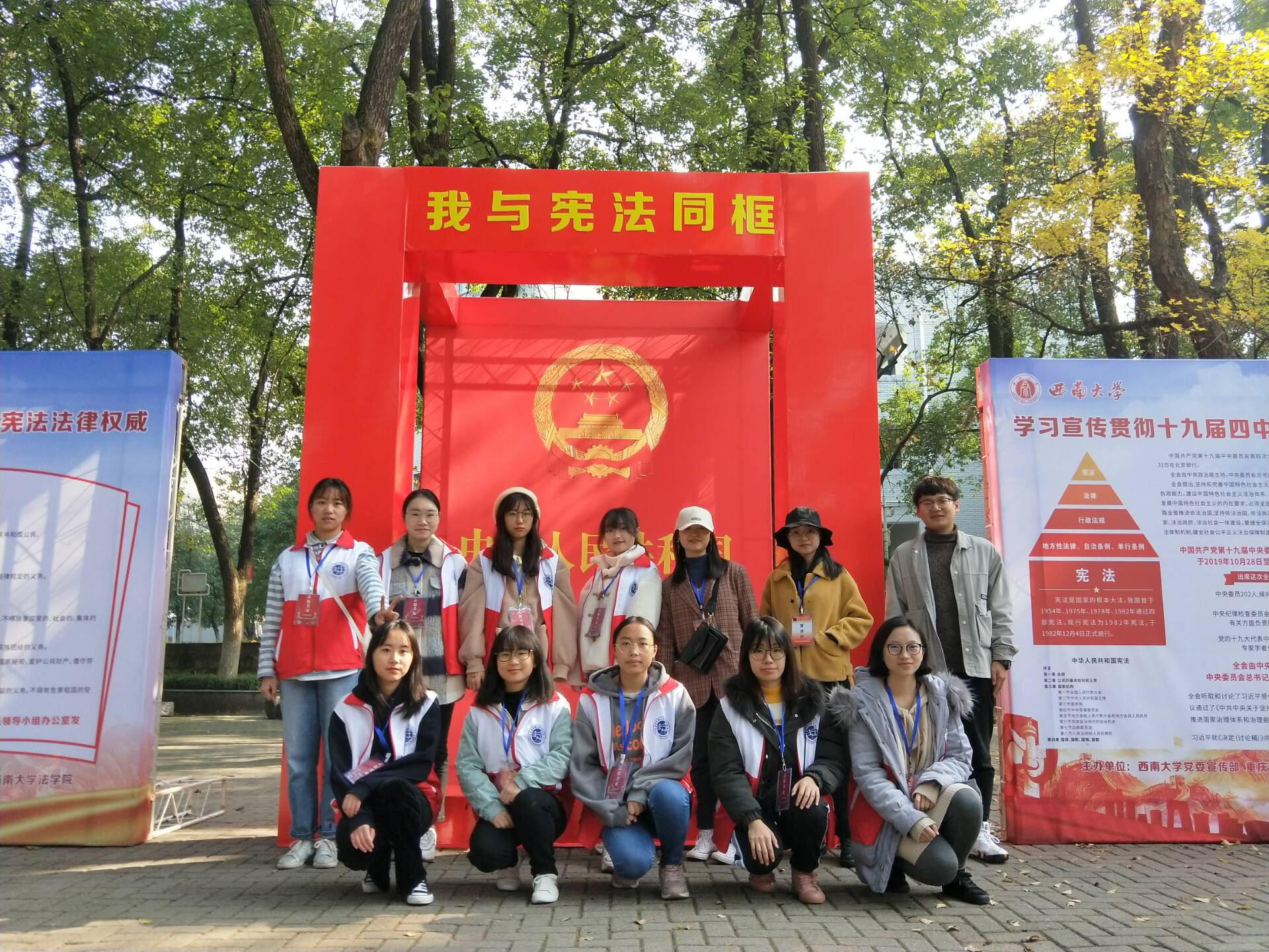12月4日至8日,图片展在南区樟树林展出。同时,“法治中国”大学生宣讲团的同学向全校同学发起“我与宪法同框”倡议。期间,学校邀请到专家张震教授录制了以“宪法是对公民美好生活向往的确认与保障”为题的宪法普及音视频,该成果将于近期在重庆市社科联社科普及公众号“社科五分钟”上线。