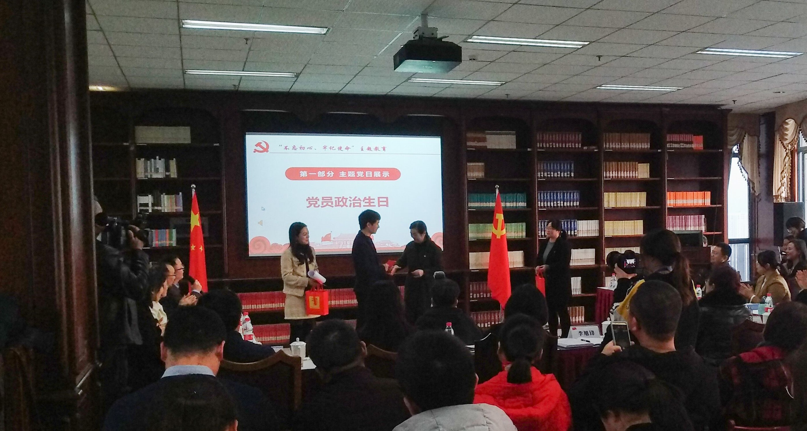 支部还为熊花和张伟锋两位党员同过政治生日,文化与社会发展学院党委书记谭琳向两位同志赠送了生日贺卡和礼物“本人入党申请书复印件”,希望两位同志时刻牢记党的宗旨,不忘初心、牢记使命,永葆共产党员先进性。随后,支部正式启动“物爱相连”爱心公益活动,号召党员同志向四川凉山州甘洛县平坝乡捐赠物资,为脱贫攻坚贡献力量。
