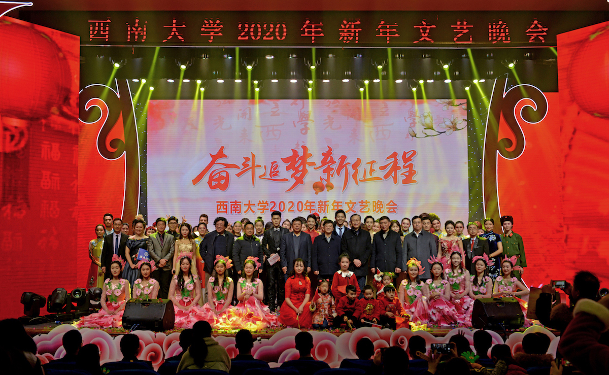 音乐学院师生歌舞《奋进之春》,踩着奋进的鼓点和追梦的步伐拉开了晚会序幕,展现了西大人的昂扬斗志。伴随开场歌舞渲染的欢快氛围,李旭锋书记,张卫国校长献上新年祝福,袁隆平、李丹阳等来自全球各地西大校友的新年祝福令全场观众心潮澎湃。晚会播放的《不忘初心,砥砺奋进——taptap点点官方网站2019年党的建设与事业发展回眸》专题片回顾了学校在党建工作、人才培养、学科科研、社会服务、国际化办学、校园文化、基础建设等多方面取得的喜人成绩。