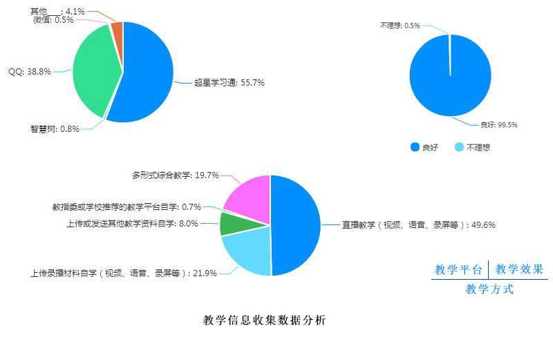 截至2月27日10:00,学院教师上课和班级上课率均达到100%,共开课126堂,教学平台使用超星学习通的占51%、QQ平台占41%;采用直播教学形式的占50%以上,85%以上课堂有签到、签退和课堂讨论,教师对在线教学组织满意度达90%以上;共组织学生参加学习531班次,学生对课堂教学质量满意度达90%以上。