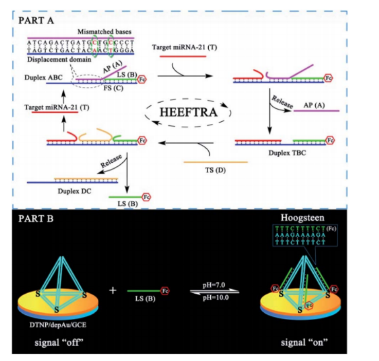 题为“Programmable mismatch-fueled high-efficiency DNA signal converter”的论文,揭示了一种可控的错配驱动的高效DNA信号转换器,并成功检测电化学生物传感器对癌症标志物MiRNA的超灵敏反应。