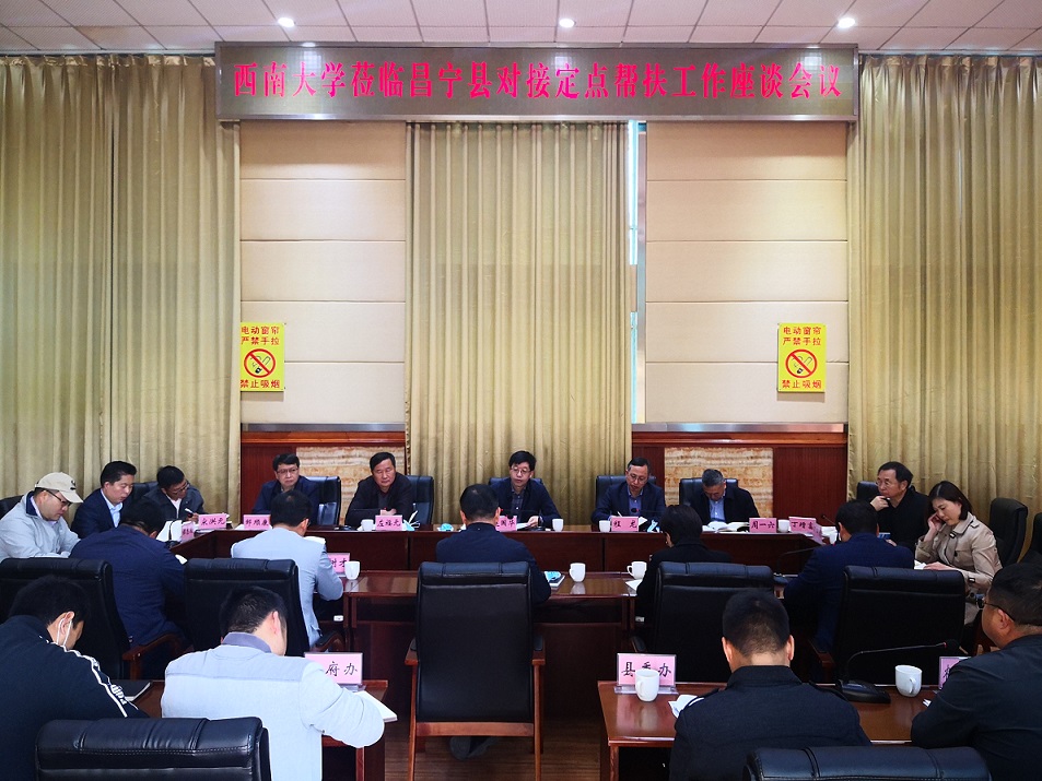 昌宁县农业农村局、教体局和田园镇等单位负责人分别就农业产业延伸、农产品加工、品牌打造以及基础教育和职业教育的发展等相关内容作了发言,希望学校给予智力帮扶。学校挂职昌宁县扶贫干部谭志友、李德谋分别作了表态发言。学校相关单位负责人对县方提出的需求作了回应,就今年定点扶贫工作计划的落实提出了具体的思路和建议。