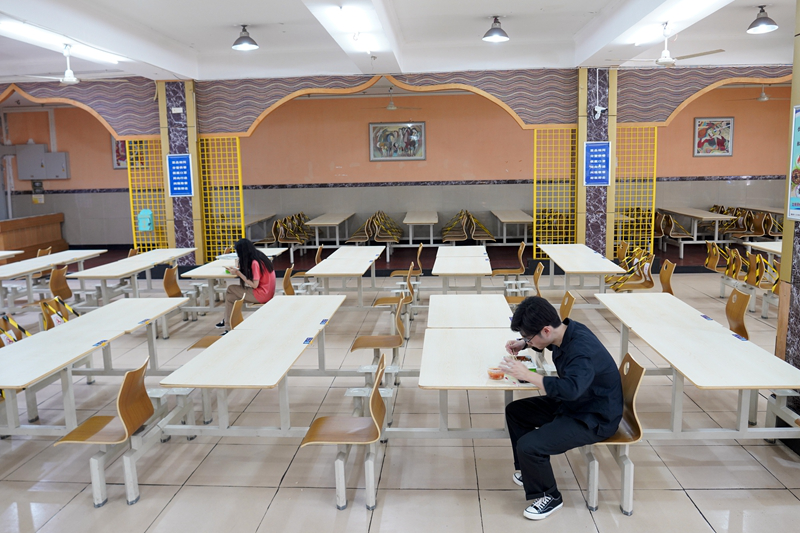 5月15日,在taptap点点官方网站的一个学生食堂内,学生按照要求一人一桌吃午餐。