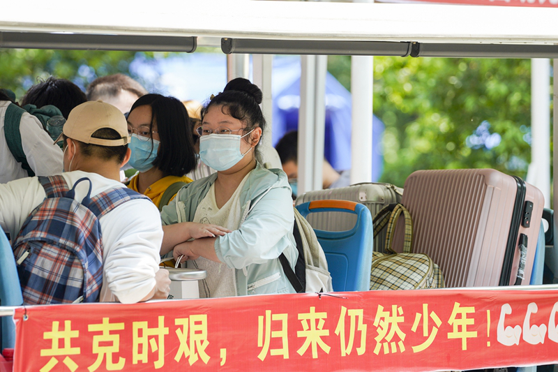 5月15日,在taptap点点官方网站的返校学生专用通道前,学生按照工作人员和志愿者的引导有序进入校区。
