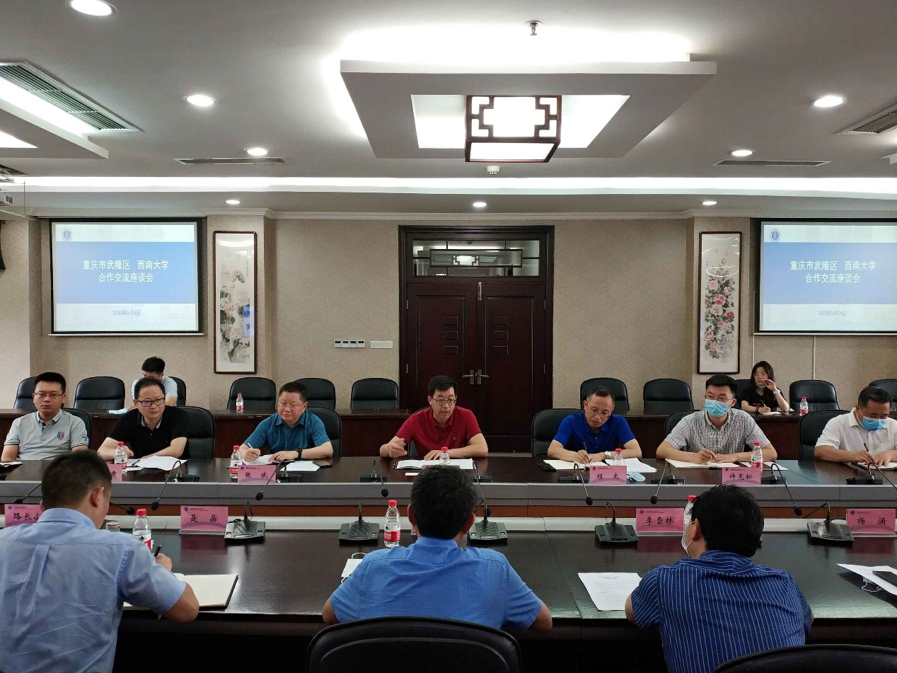 武隆区政府办公室、教委、商务委、人力资源与社会保障局等相关部门,学校国内合作处、招生就业处、团委、创新创业学院、经济管理学院、食品科学学院等单位负责人参加座谈。