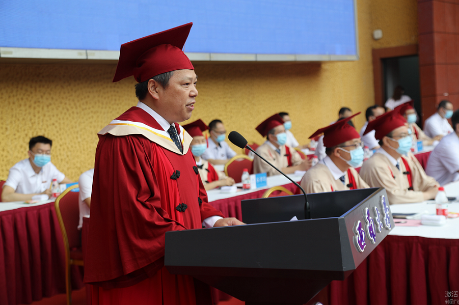张卫国从四年前迎新时的一次合影谈起,饱含深情地带领大家回顾了2020届毕业生大学四年的点滴经历,同学们与学校共同的发展与进步。张卫国以疫情影响下的“有生之年”为话题,鼓励全体毕业生要真正认识时代、理解时代,肩负历史使命,为这个伟大的时代而不懈奋斗。张卫国殷切希望全体毕业生要在未来新的人生征程中,胸怀大局、担当作为,勤勉奋进、不负青春,健康生活、守护幸福,做到在危机中学会成长。