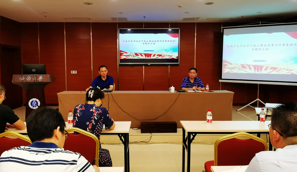 9月3日下午,后勤保障部党委在丹桂楼一楼会议室组织召开习近平总书记关于制止餐饮浪费行为重要指示专题学习会。后勤保障部党委和后勤集团班子成员、相关服务中心负责人、餐饮从业管理人员共70余人参加会议。