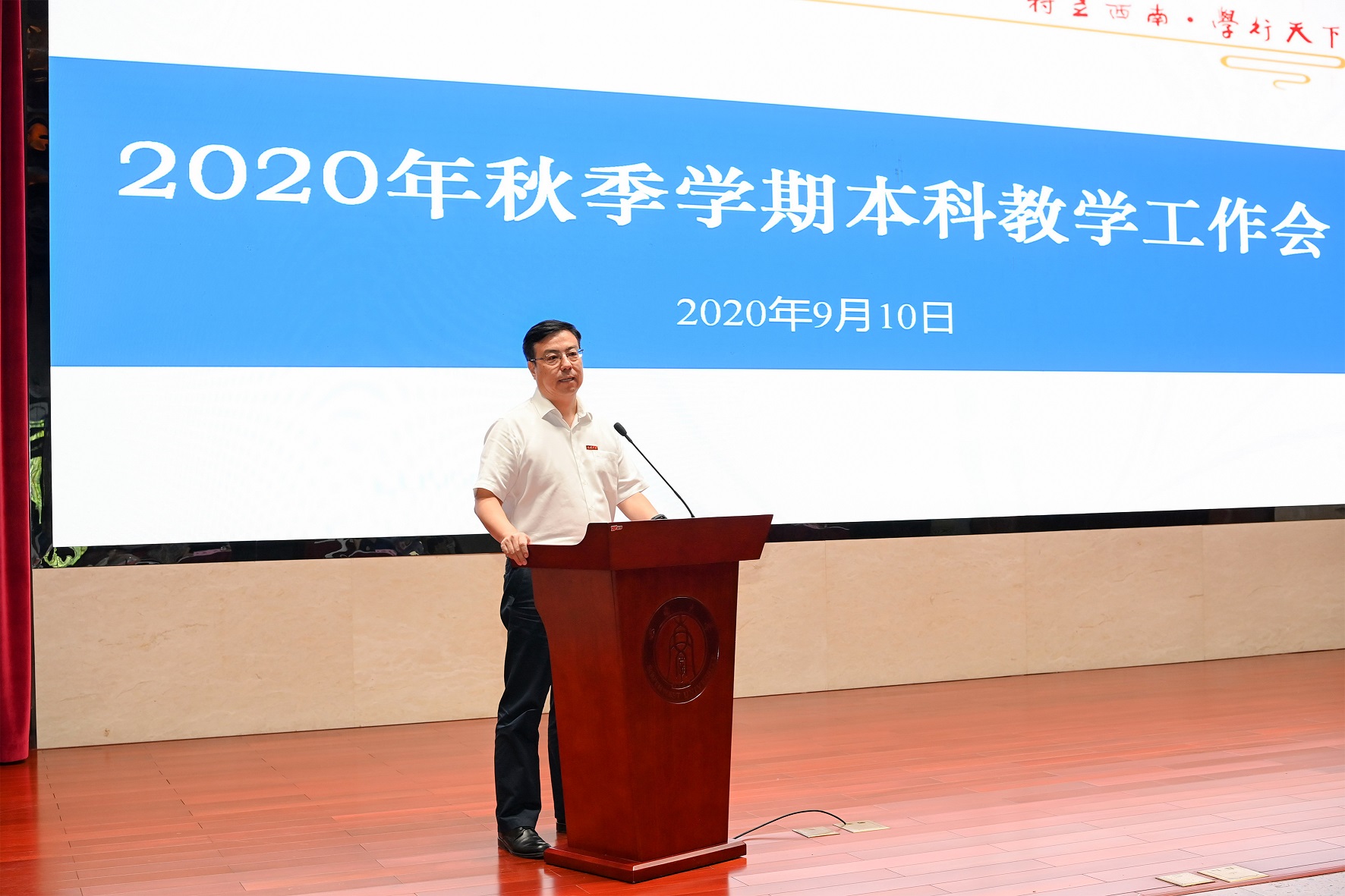 9月10日下午,学校在东方红会议厅召开2020年秋季学期本科教学工作会,部署新学期本科教学工作。副校长王进军出席会议并讲话。
