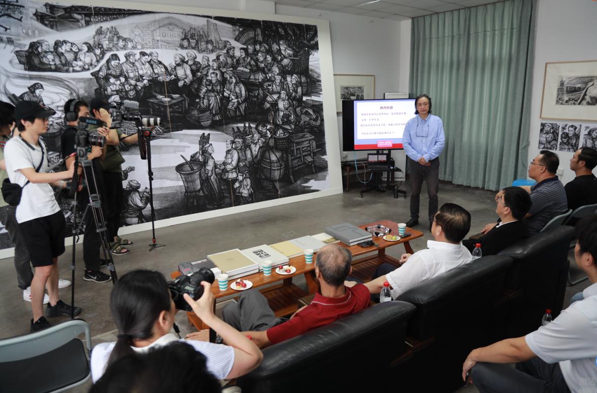 为迎接中国共产党成立100周年,中央宣传部、中国文联、财政部、文化和旅游部联合主办,中国美术家协会承办的“不忘初心继续前进——庆祝中国共产党成立100周年大型美术创作工程”,已进入巡视审稿阶段。9月14日,建党百年大型美术创作工程组委会领导及专家组成员、中国美术家协会分党组书记、驻会副主席徐里,中国美协副主席、重庆美协主席、重庆美术馆馆长庞茂琨,党史军史专家单劲松、赵宇、陈伙成,及中国文联美术艺术中心、中国美术家协会有关负责人和工作人员一行,来到学校戴政生教授木刻创作室进行巡视审稿工作,学校党委书记李旭锋、校长张卫国分别会见来校专家。