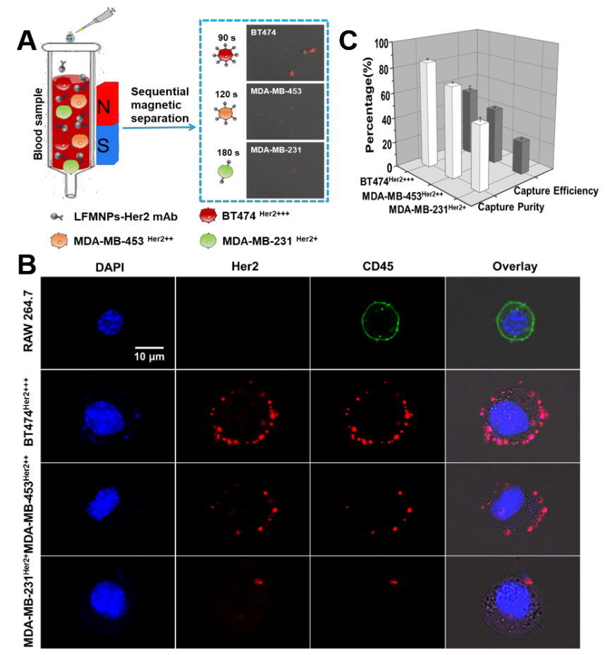 近日,国际知名期刊(Advanced Functional Materials)在线发表药学院宋尔群教授课题组在基于磁性梯度分离策略进行异质性肿瘤细胞分析方面的重要研究成果“Isolation and Analysis of Tumor Cell Subpopulations Using Biomimetic Immuno‐Fluorescent Magnetic Multifunctional Nanoprobes”(DOI: 10.1002/adfm.202004963)。