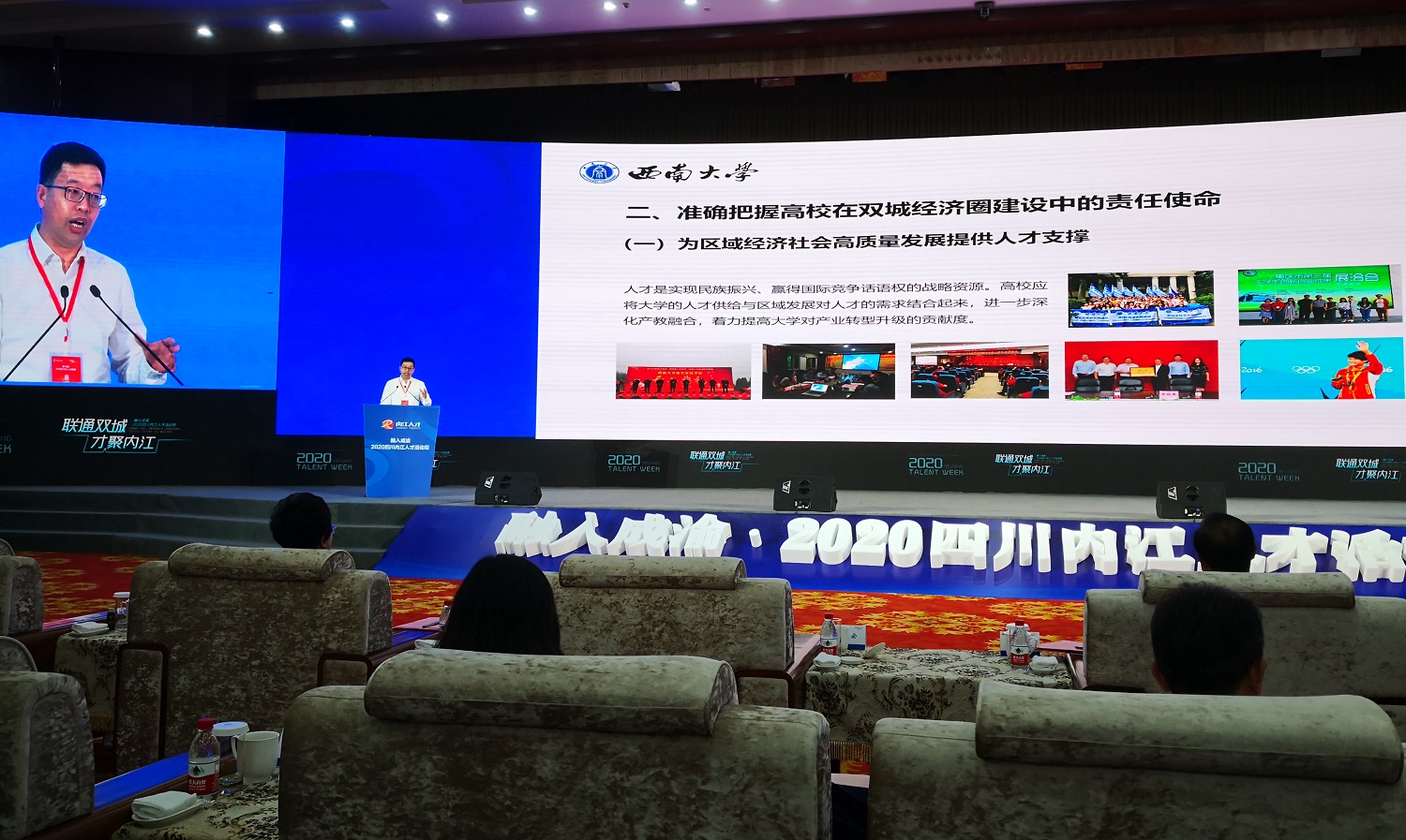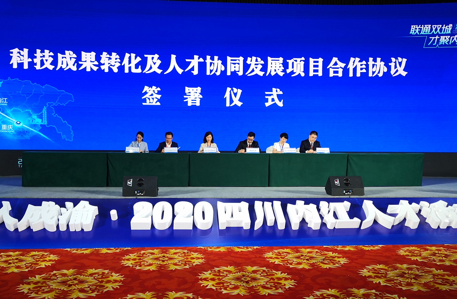 在“融入成渝·2020四川内江人才活动周”开幕式上,赵国华代表学校与内江市签订战略合作框架协议。作为学校服务成渝地区双城经济圈战略的重要内容,学校将与内江市在战略咨询、科技创新与成果转化、干部人才交流与培养等方面开展深入合作。