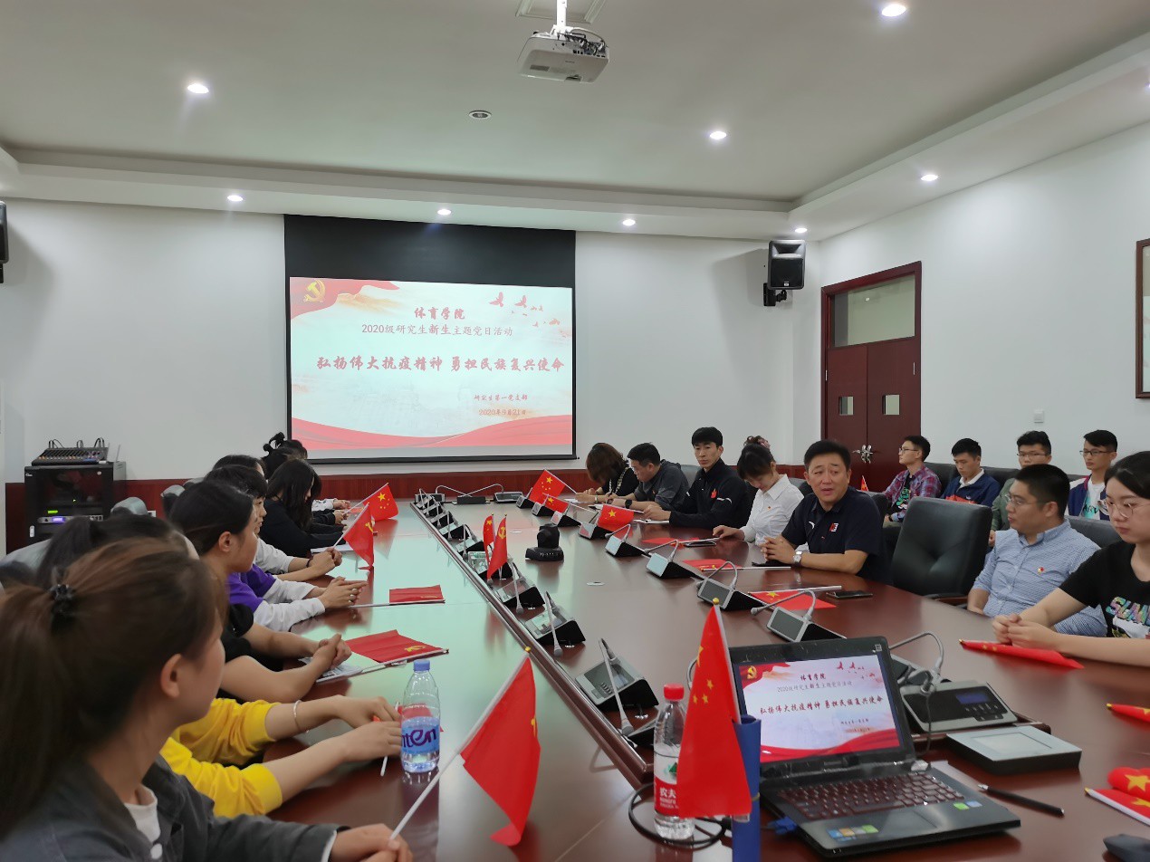 9月21日下午,体育学院研究生第一支部新生主题党日活动——“弘扬伟大抗疫精神,勇担民族复兴使命”举行,奥运冠军赵帅为大家讲授党课。体育学院党委负责人、研究生第一支部书记、辅导员以及全体研究生新生党员参加活动。