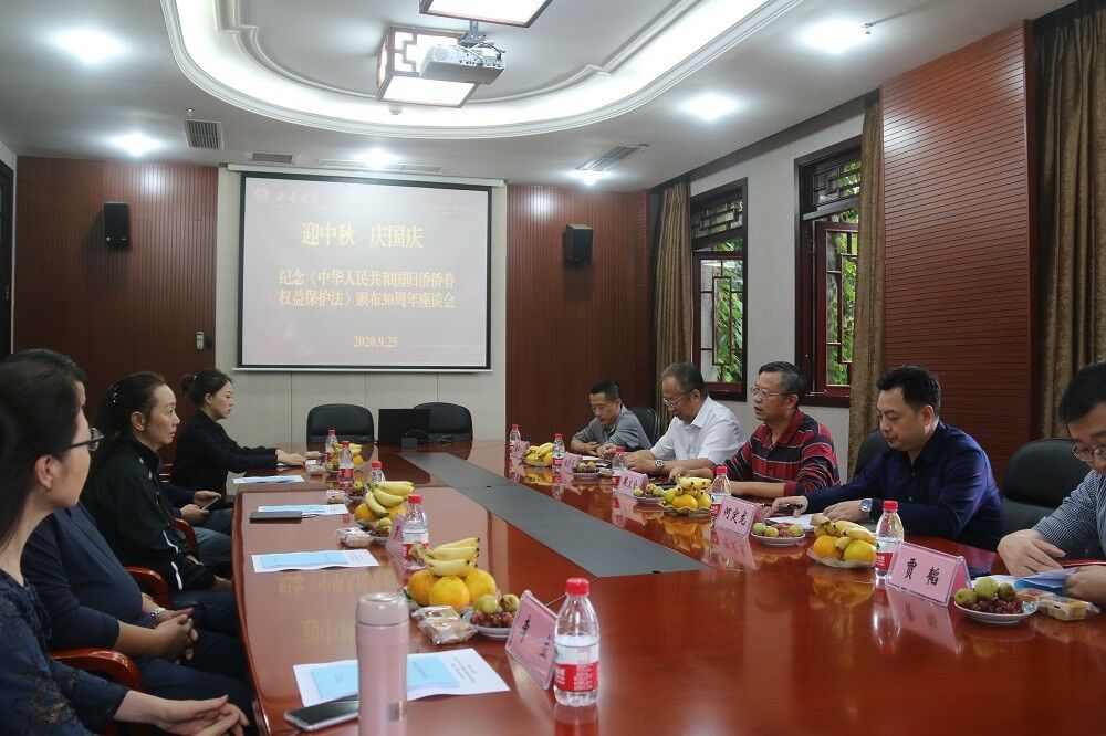 9月25日下午,学校召开“迎中秋 庆国庆”暨纪念《中华人民共和国归侨侨眷权益保护法》(简称《侨法》)颁布30周年座谈会。会议由党委统战部负责人主持,学校归侨、侨眷、归国留学人员代表以及党委统战部工作人员参加会议。