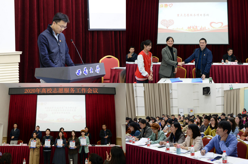 10月20日,2020年重庆市高校志愿服务工作会在学校召开。团市委党组成员、副书记黄永宜,学校党委副书记潘洵,全市65所高校团委负责同志及从事志愿服务工作同志,团市委高校工作部及市志愿服务工作指导中心相关同志参加会议。