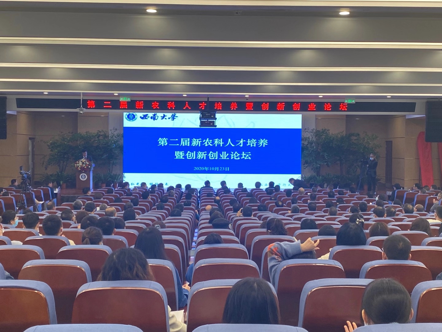 10月23日,在第九届中国畜牧科技论坛举办期间,第二届新农科人才培养暨创新创业分论坛在学校荣昌校区举办。学校党委书记李旭锋、校长张卫国、副校长王进军等领导出席畜牧科技论坛开幕式。教育部高等教育司、重庆市教育委员会、荣昌区委区府等各级领导以及全国38所涉农兄弟院校的校领导、教务部门负责人等参加分论坛。王进军主持论坛。