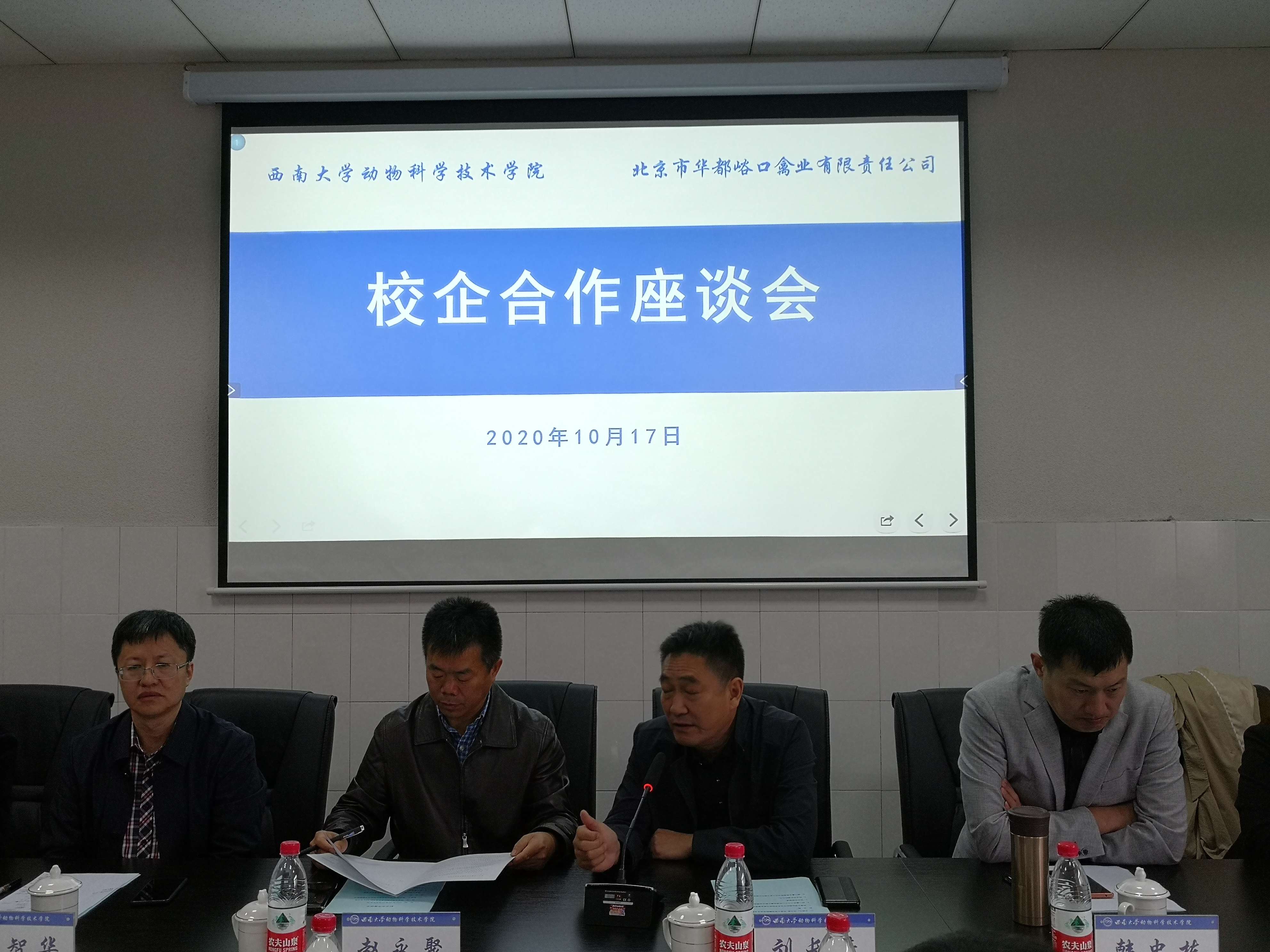 仪式上,动物科学技术学院负责人向北京沃德辰龙生物科技股份有限公司峪口禽业党委副书记工会主席刘长清、新希望事业部总裁严帅、华裕农业科技有限公司总裁闫文亮一行表示诚挚的欢迎,并介绍动物科学技术学院发展历史、师资队伍建设、学科专业、人才培养等情况,希望能与企业在人才培养、科学研究、社会服务等方面进行深度合作。企业代表在发言中感谢学校输送大量专业人才,并介绍企业相关情况。双方就如何有效开展校企合作、培养专业人才等问题充分交换意见。