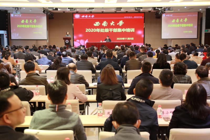 11月5日上午,学校在国际学院报告厅召开了2020年全校处级干部第一次集中培训会。校长张卫国作《辨清形势,抓住问题,谋好未来——做有眼界、敢担当、能成事的新时代高校干部》的专题报告。全校处级干部参加会议,会议由党委常委、党委组织部部长杨爱华主持。