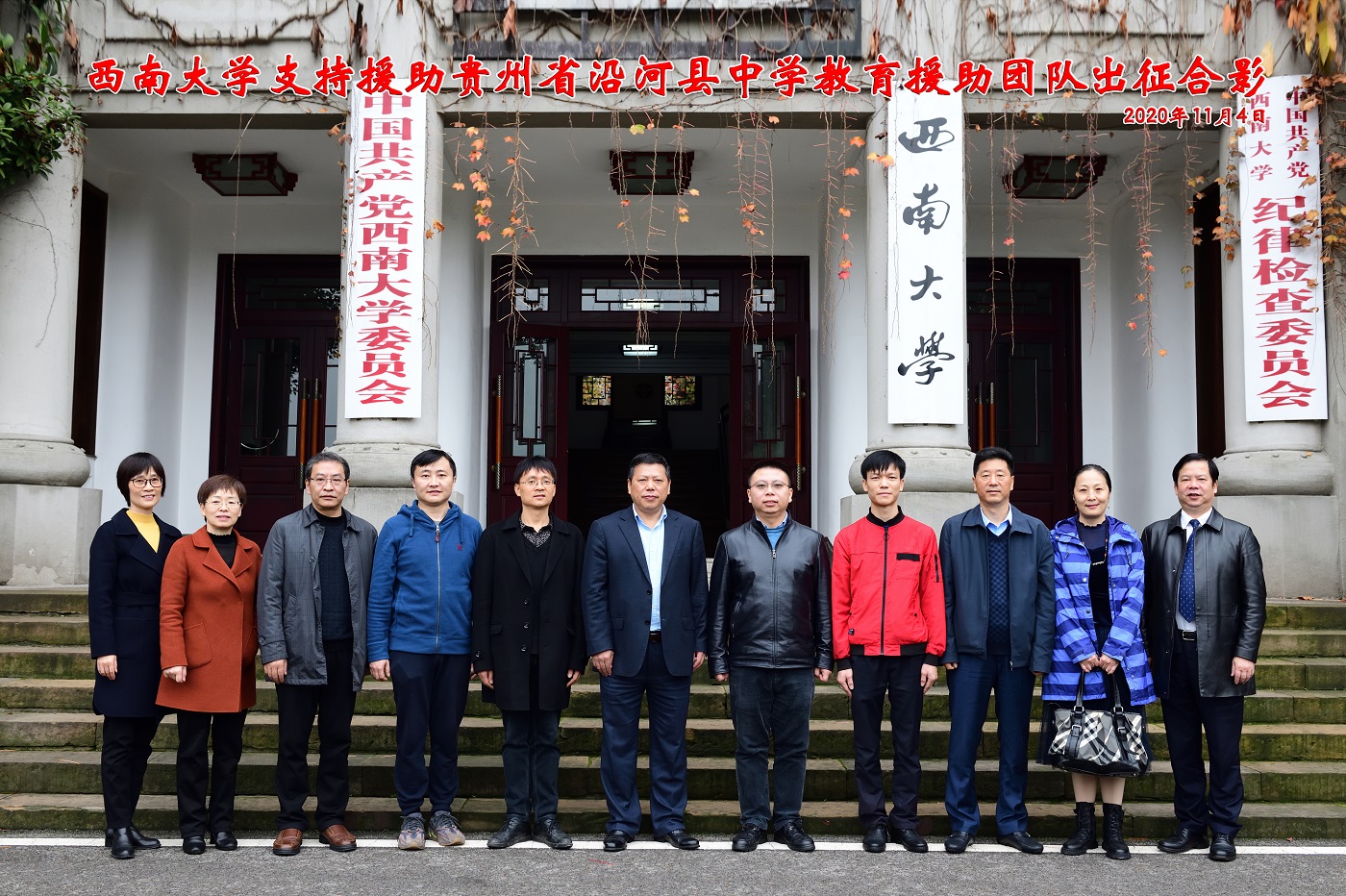 座谈会结束后,校领导与出征团队成员合影留念。