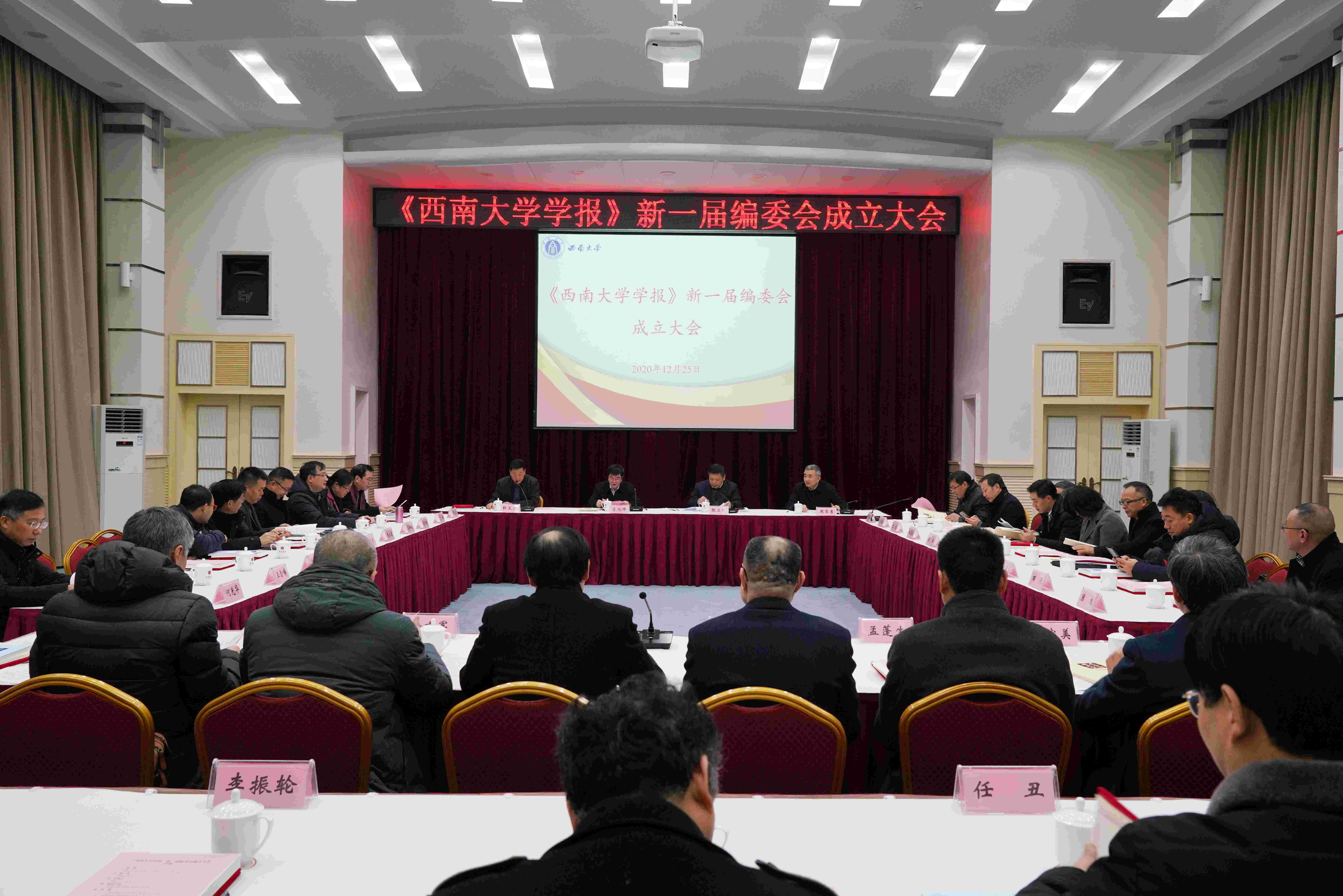 靳玉乐介绍学报新一届编委会产生情况和编委职责,期刊社负责同志汇报期刊社近期工作,编委代表周常勇教授和王本朝教授分别作交流发言。