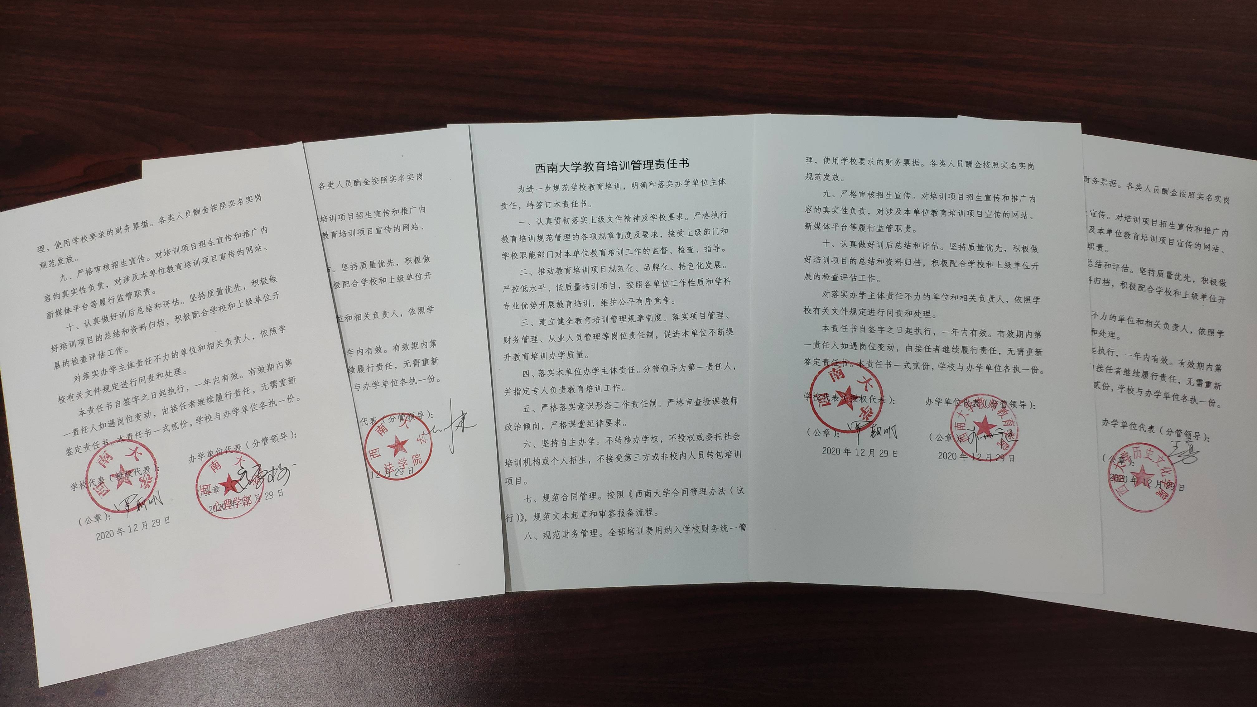为规范学校教育培训工作,明确和落实办学单位主体责任尤其是意识形态安全责任,学校与各办学单位签订教育培训管理责任书。