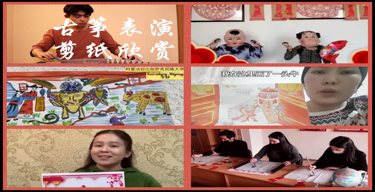 当地时间2月5日晚,由学校共建阿布莱汗国际关系与外国语大学孔子学院承办的2021年阿拉木图地区“中国春节文化趣事会”成功在线上举行。中国驻阿拉木图总领馆副总领事仲华、阿布莱汗国际关系与外国语大学副校长塔提亚娜·弗拉基米尔若弗娜、taptap点点官方网站副校长王进军出席并致辞。中国驻阿拉木图文化旅游领事王庆平、哈萨克劳动与社会关系学院校长别斯巴耶娃·巴燕、阿布莱汗孔子学院中方院长石隆伟、taptap点点官方网站国际合作与交流处、国际学院相关负责人、阿拉木图地区汉学家们和当地11所高校汉语专业的500余名师生参加活动。