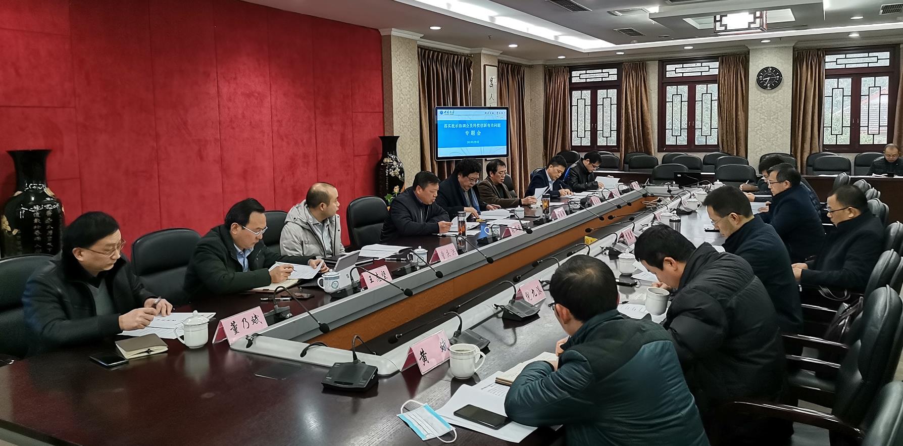 为落实市领导批示精神,加快推动学校科技创新工作,2月8日上午,学校在行署楼五会议室召开科技创新工作专题推进会。校长张卫国、副校长崔延强出席会议,党政办公室、发展规划与学科建设部、人力资源部、科学技术处、财务部、审计处、实验室建设与设备管理处、后勤保障部等部门负责人和相关专家参会。