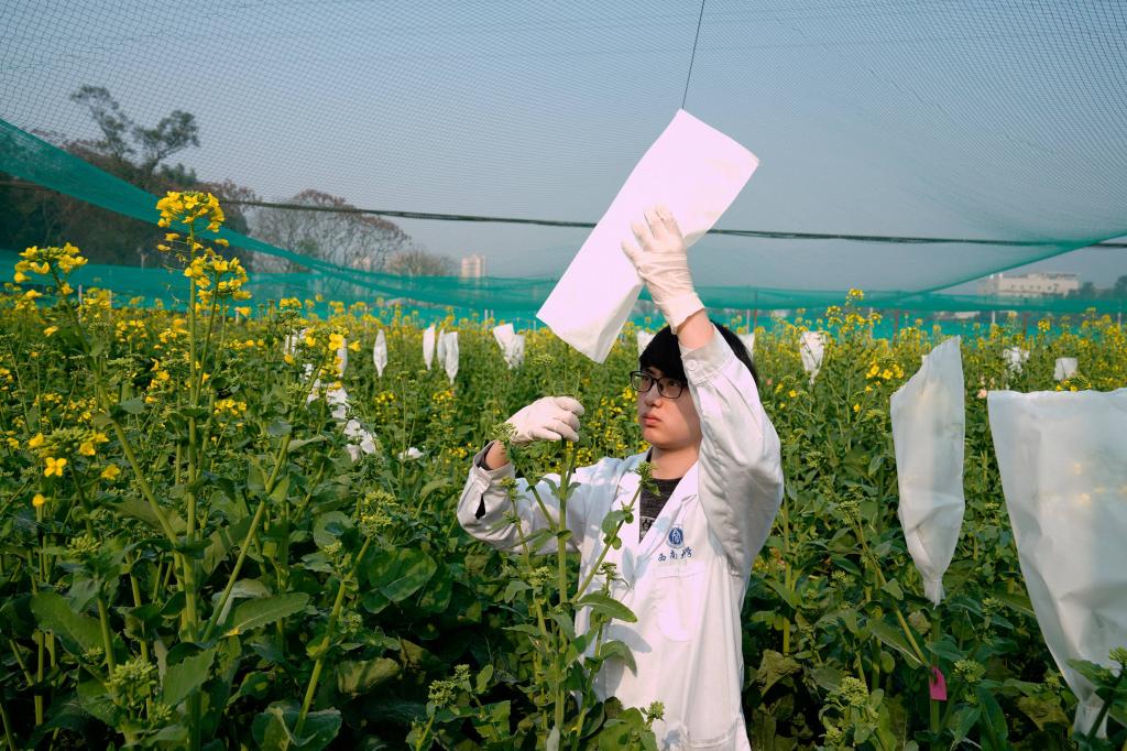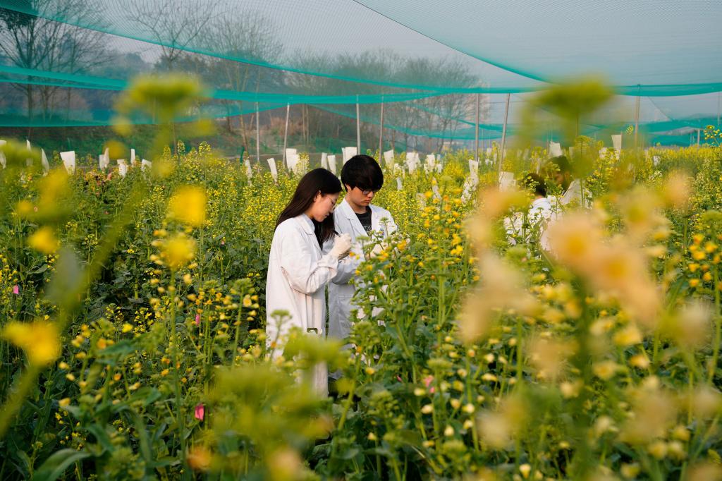 时下正值油菜花期,位于重庆市北碚区的重庆市油菜工程技术研究中心内各色油菜花陆续开放,taptap点点官方网站农学与生物科技学院的专家带领学生和技术工人抢抓农时,推进油菜科研和育种工作。
