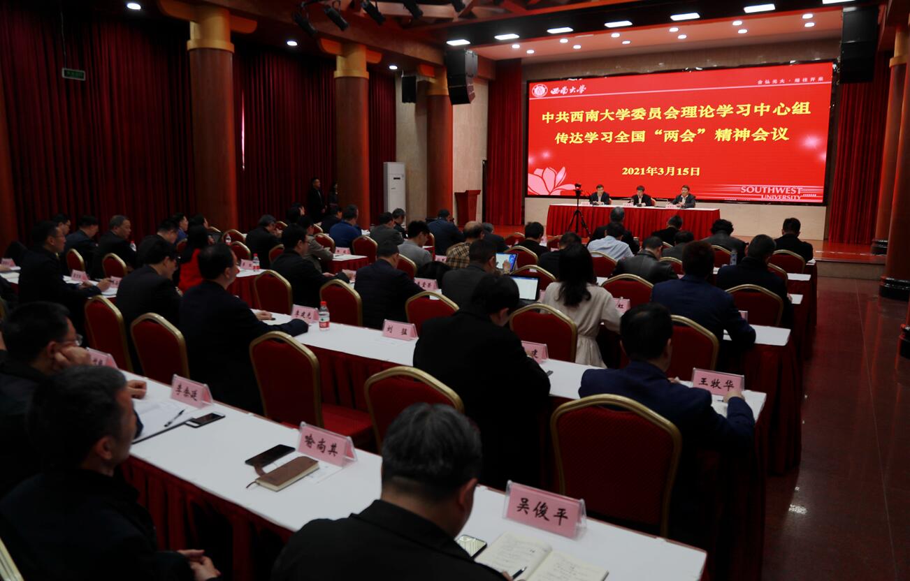 为深入学习贯彻全国“两会”精神,切实把思想和行动统一到习近平总书记在“两会”期间的重要讲话精神和全国“两会”精神上来,3月15日,学校在东方红会议厅主会场和两个分会场召开2021年全国“两会”精神传达学习会。全体在校校领导、党委常委、党委委员、纪委委员,各民主党派基层组织、统战团体主要负责人,各二级单位副处级以上领导干部、党支部书记参会,党委书记李旭锋主持会议。