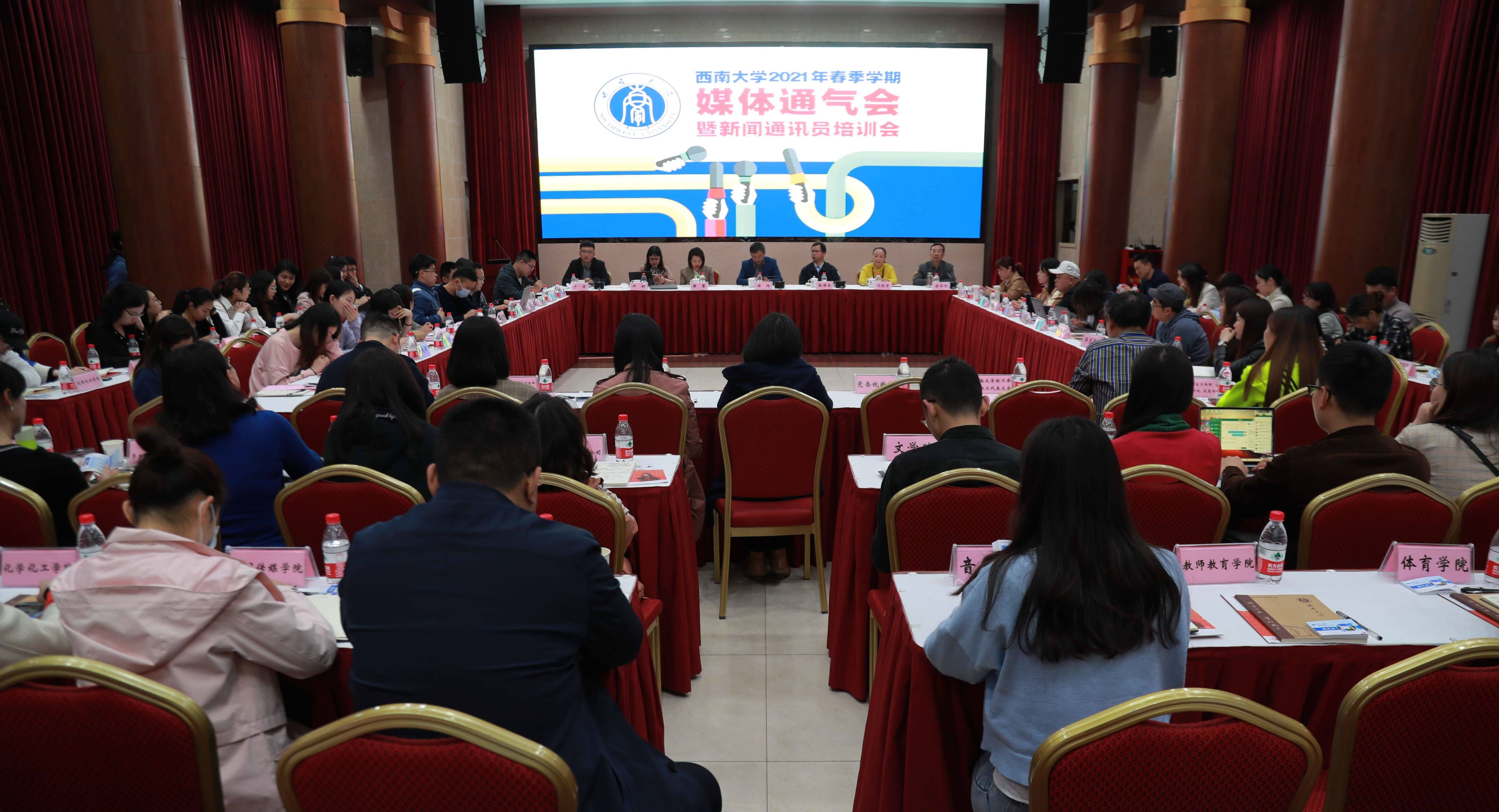 3月18日下午,学校于东方红会议厅召开2021年春季学期媒体通气会暨新闻通讯员培训会。学校党委副书记潘洵,党委常委、党委宣传部、党委网络工作部部长李荣华出席会议。党委宣传部、党委网络工作部相关负责同志、学校各单位新闻通讯员参加会议。人民日报、新华社、光明日报等16家媒体平台的20余位新闻媒体人员莅临指导。
