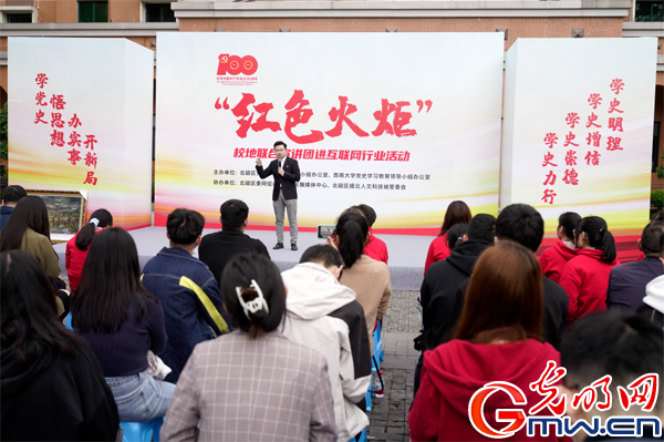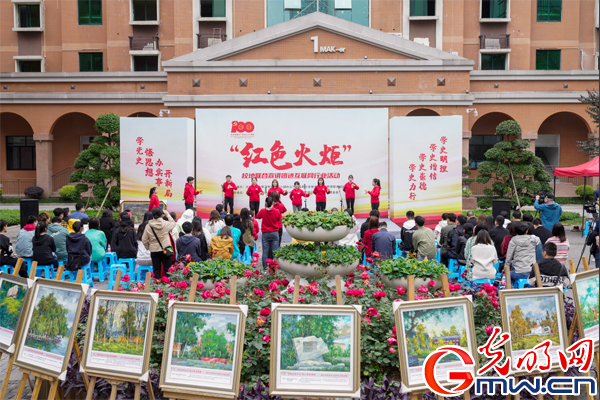 展油画、说快板、讲评书……4月20日,在taptap点点官方网站(重庆)产业技术研究院中心广场上,学校与北碚区成立的“红色火炬”校地联合党史宣讲团正用多种艺术形式的党史教育面向互联网行业轮番“开讲”。活动受到光明网、重庆日报、重庆卫视、上游新闻等多家媒体广泛报道。