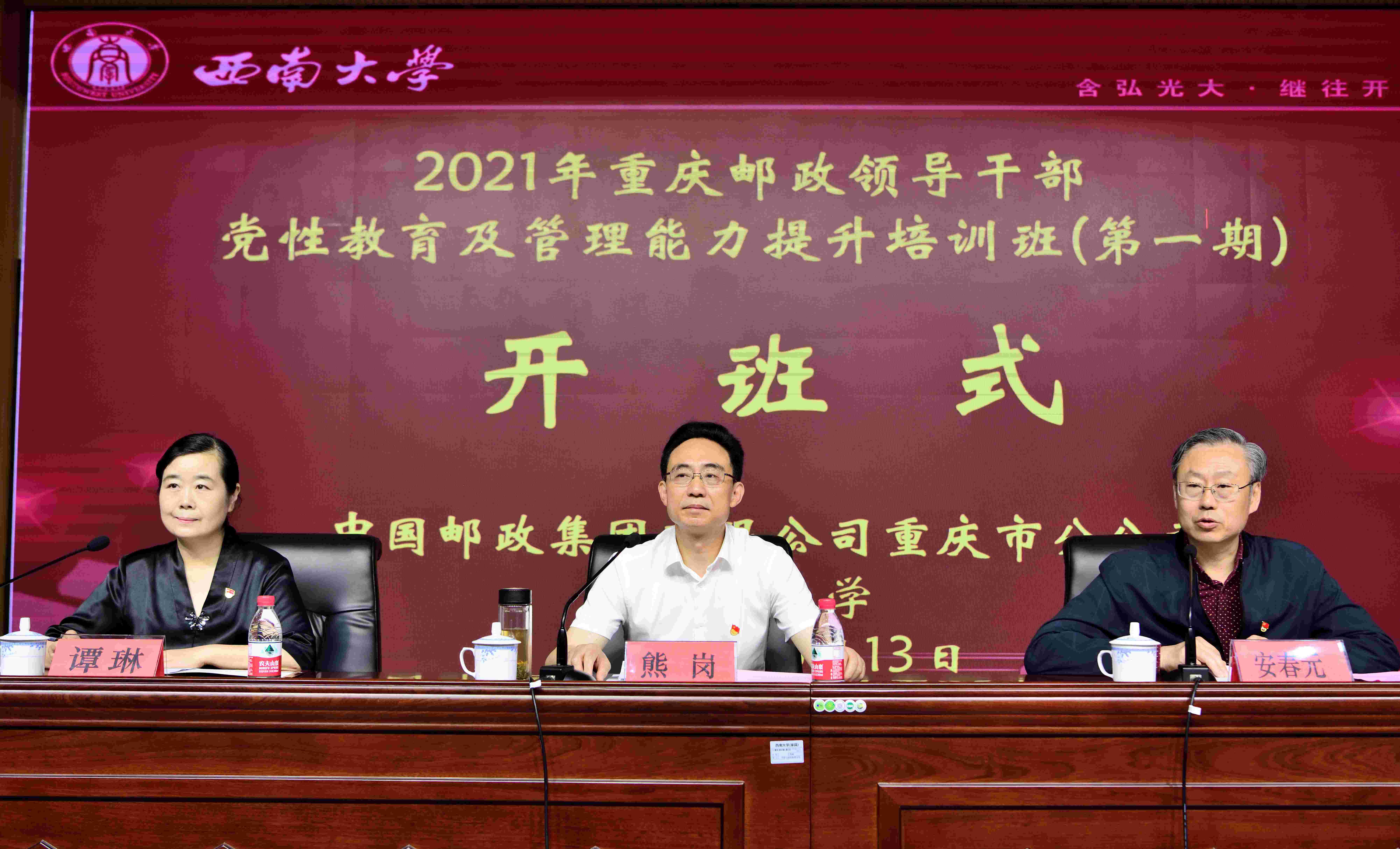 学校党委副书记安春元、中国邮政集团有限公司重庆市分公司副总经理熊岗出席开班式并分别讲话,开班式由学校培训与继续教育学院党总支书记谭琳主持。