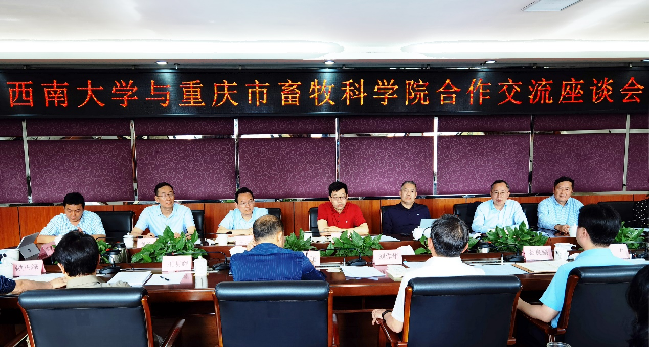 5月11日,学校副校长赵国华带队前往重庆市畜牧科学院考察交流,商讨校院合作相关事宜。重庆市畜牧科学院院长刘作华、副院长梁大超出席座谈会,学校党政办公室、发展规划与学科建设部、人力资源部、科学技术处、国内合作处、荣昌校区党工委和管委会相关负责人参加座谈交流。