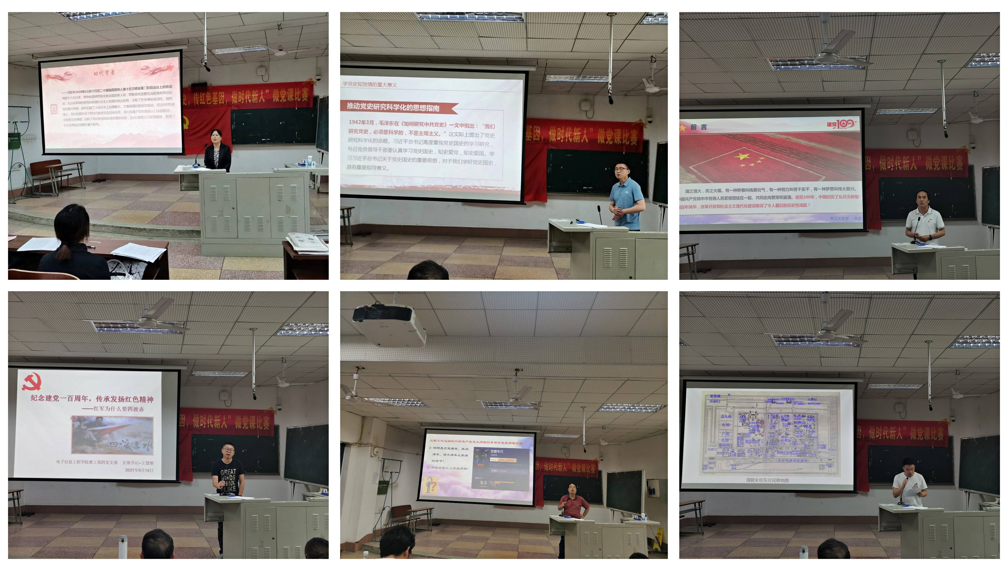 为庆祝建党100周年,深入推进党史学习教育,引导师生“学史明理、学史增信、学史崇德、学史力行”,5月14日下午,电子信息工程学院党委开展“学百年党史,传红色基因,做时代新人”庆祝建党100周年微党课比赛。来自各支部的11名选手参加比赛,学院全体师生党员到场观摩聆听。