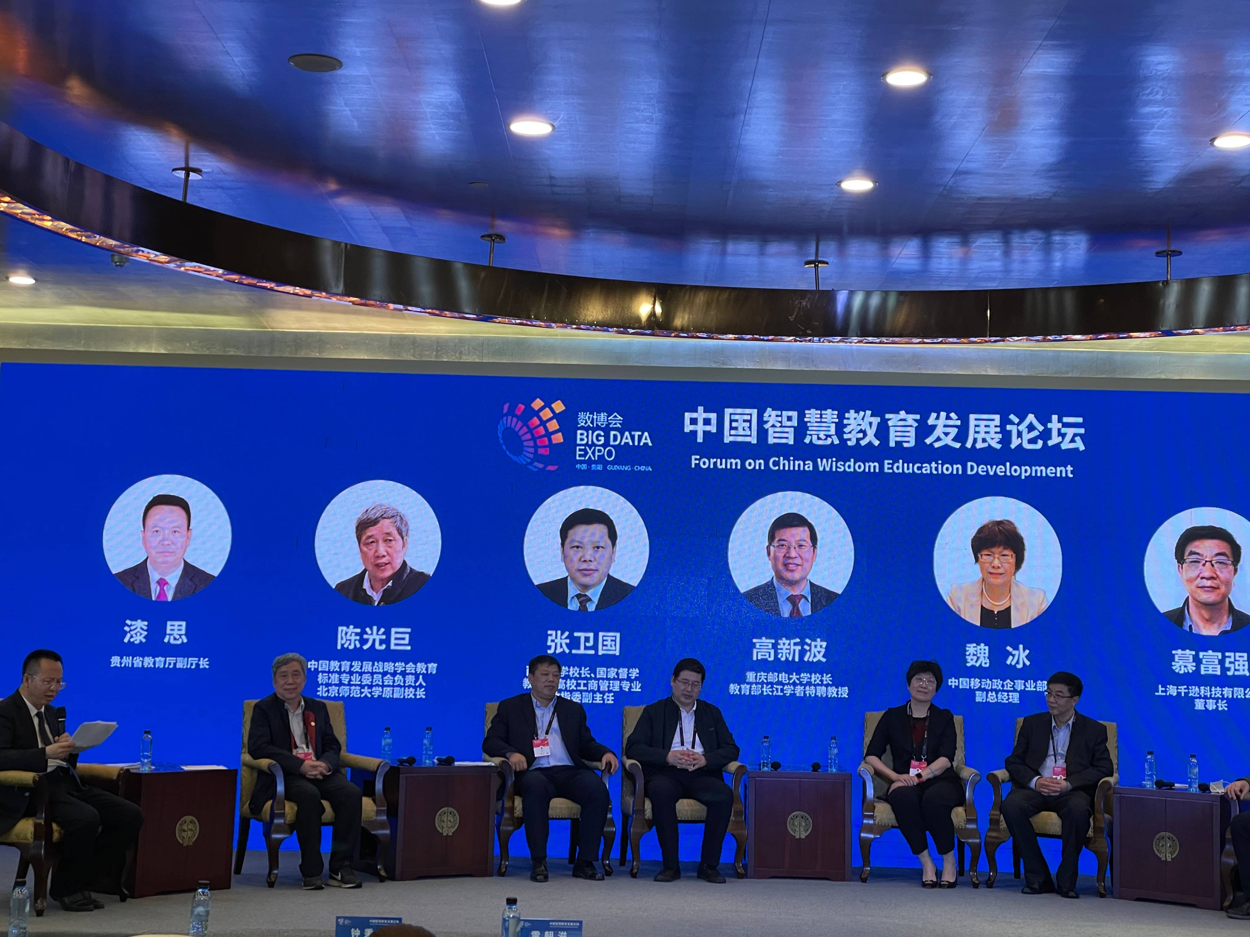 5月26日下午,2021数博会中国智慧教育发展论坛在贵阳举行,来自全国政产学研各界的领导、专家、代表,聚焦中国智慧教育发展战略,探讨智慧教育创新路径。贵州省委常委、宣传部部长、教育工委书记卢雍政,教育部科学技术与信息化司司长雷朝滋等出席论坛并致辞,校长张卫国代表学校参加并在高端对话环节发言。