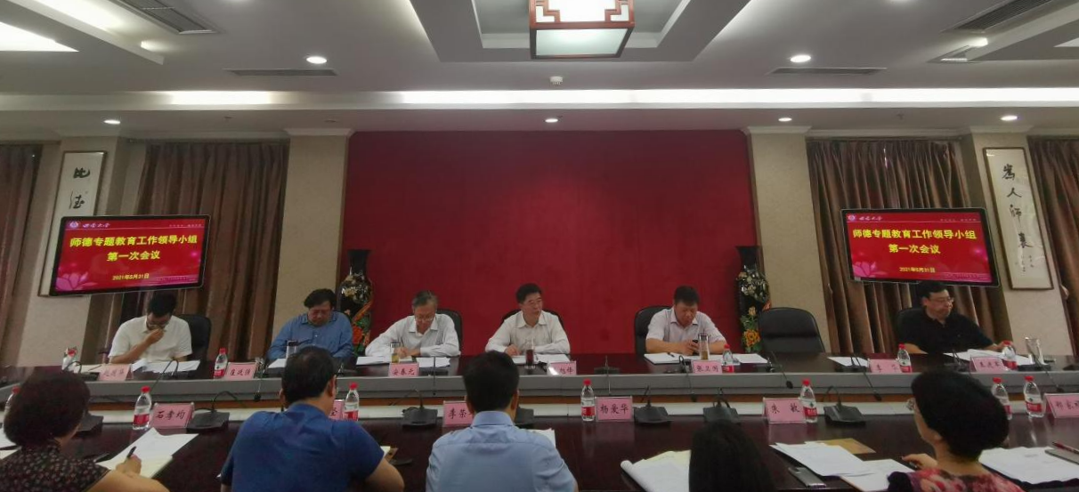 5月31日上午,学校在行署楼第五会议室召开师德专题教育工作领导小组第一次会议,研究部署学校师德专题教育工作有关事项。学校党委书记李旭锋主持会议并讲话,校长张卫国,党委副书记安春元,党委副书记、纪委书记李华,副校长崔延强、王进军、赵国华出席,相关单位负责人参会。
